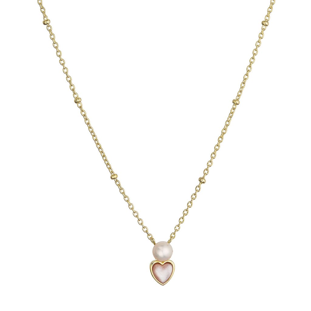 Pozlacený náhrdelník s říční perlou srdíčko 22055.1
