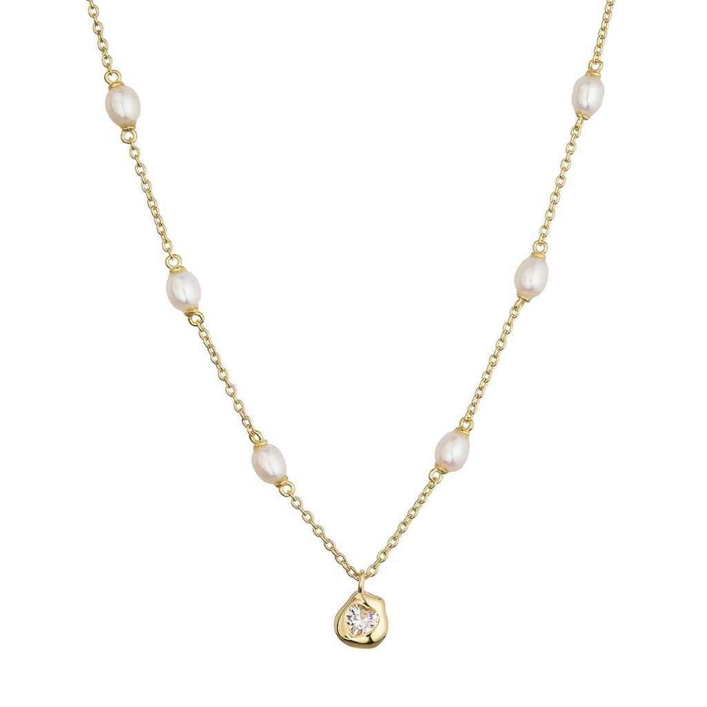 Pozlacený náhrdelník s říčními perlami a srdíčkem 22058.1