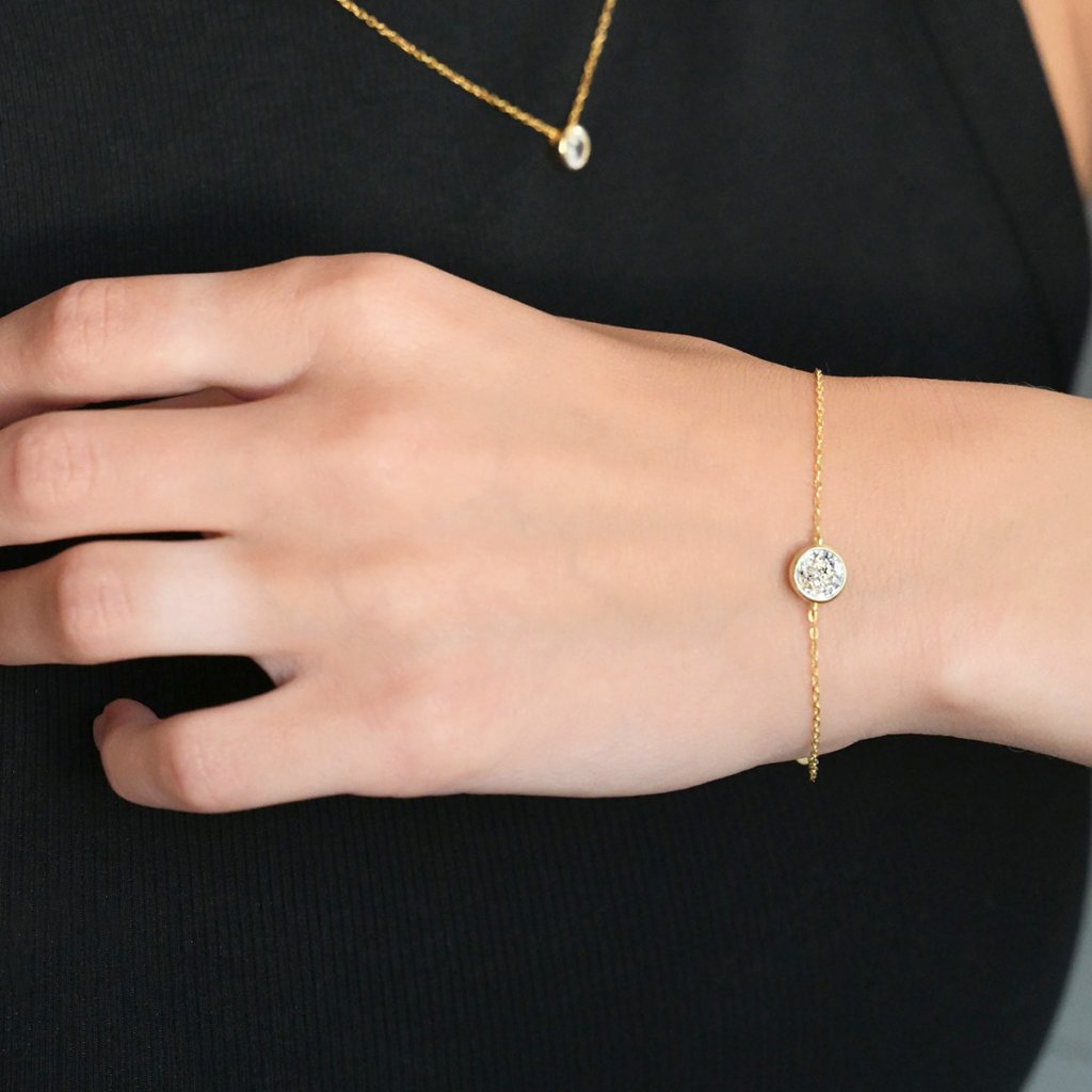 Pozlacený náramek řetízek s jedním zirkonem 13025.1