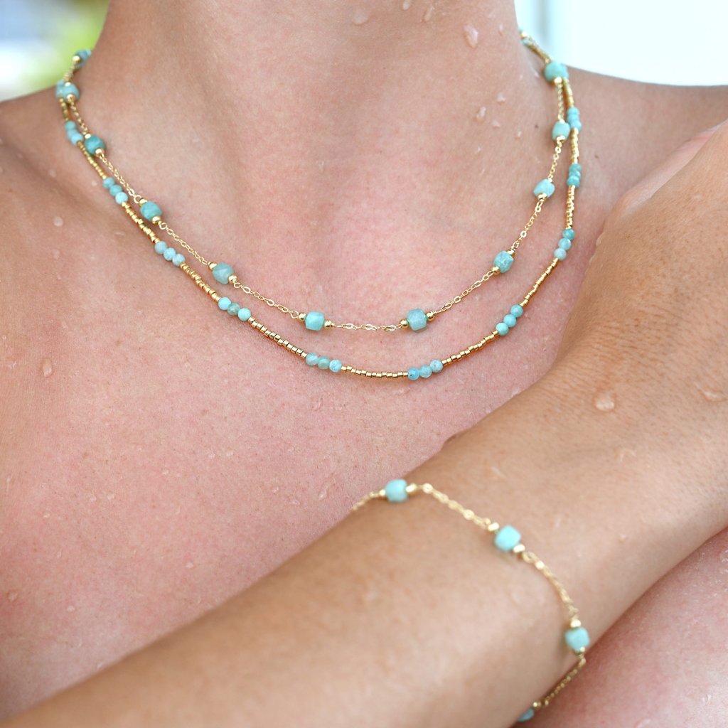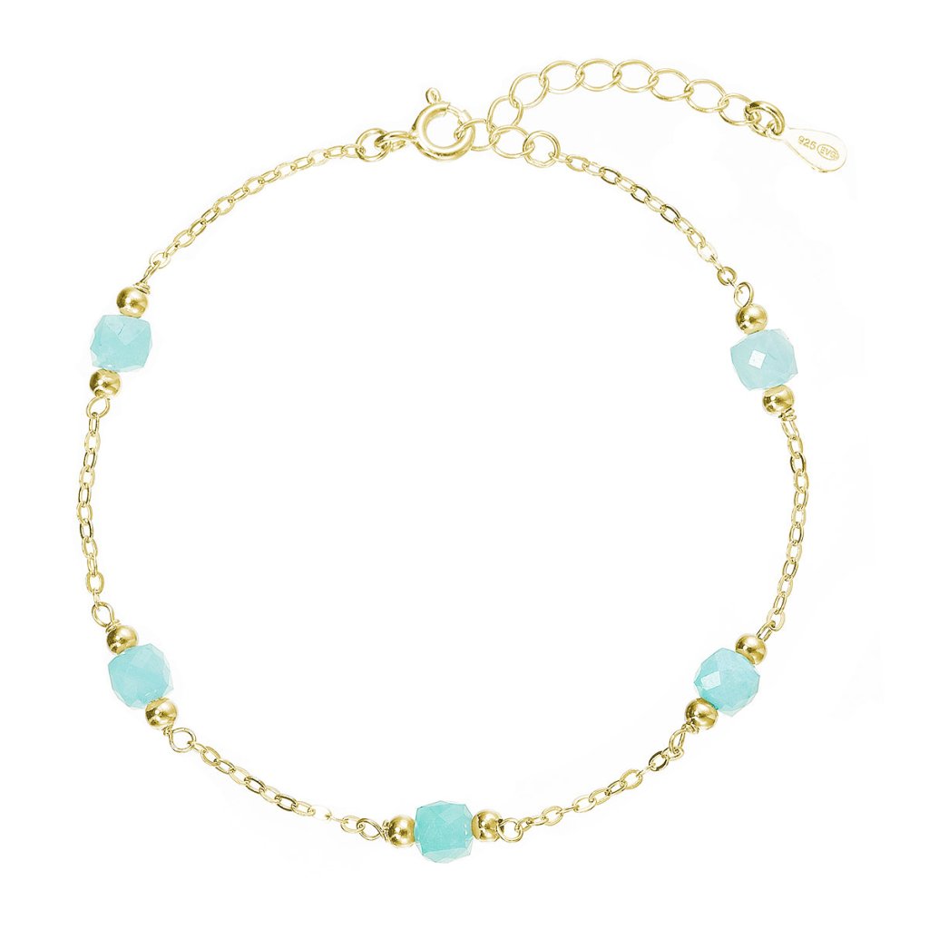 Jemný pozlacený náramek s drobnými fazetovanými amazonity v nádherné mentolově zelené barvě.