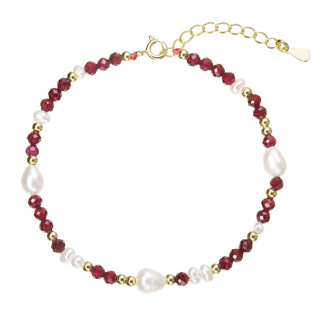 Pozlacený náramek s perlami a granáty 13113.3