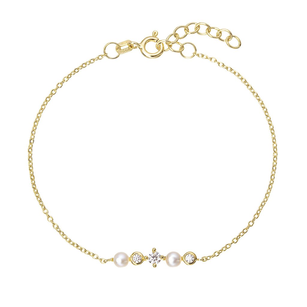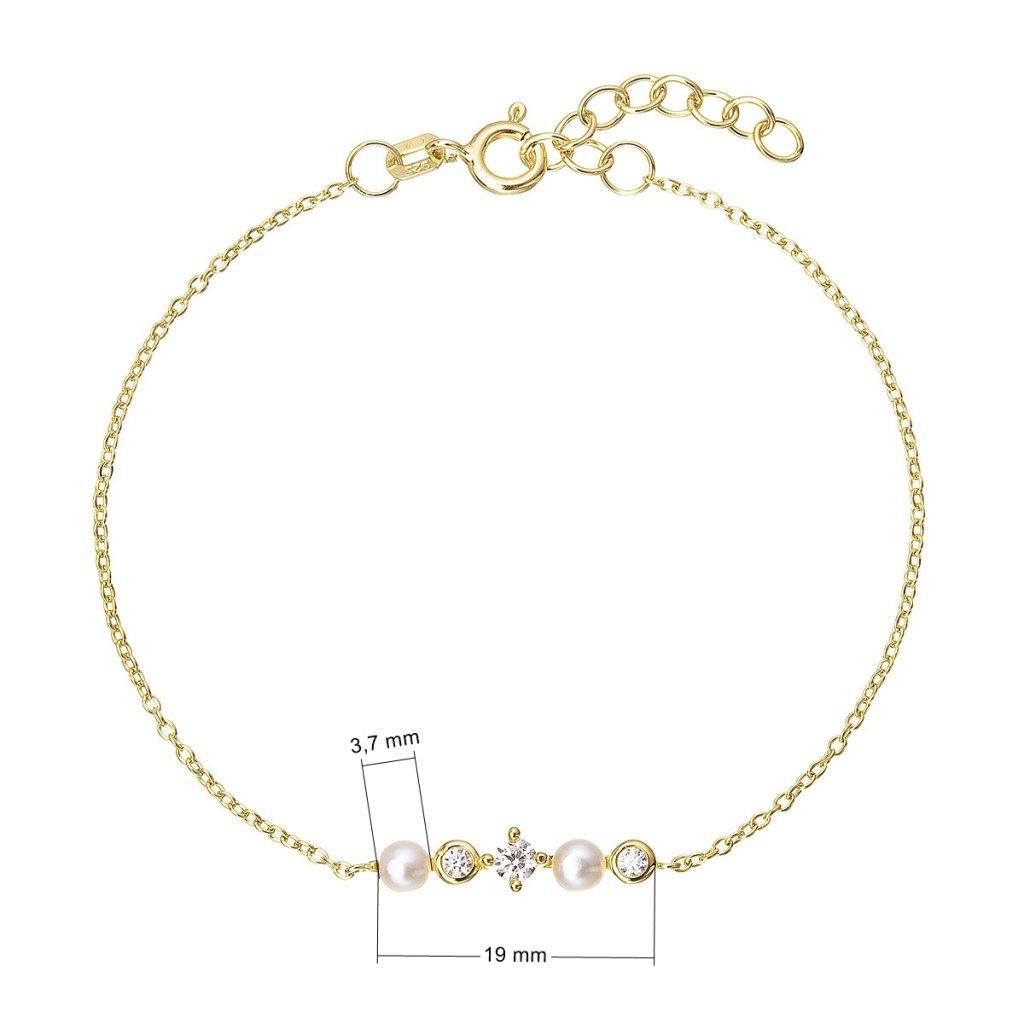 Pozlacený náramek s říčními perličkami a zirkony 23031.1