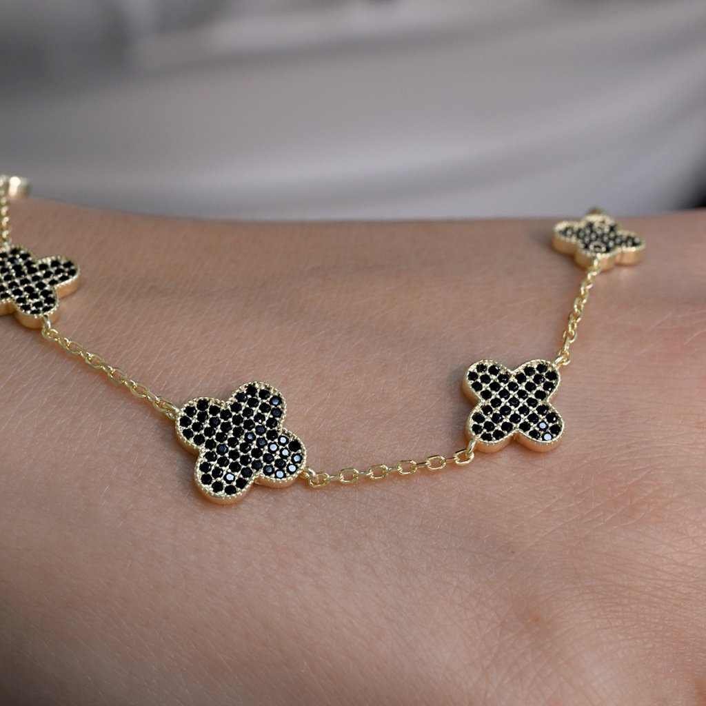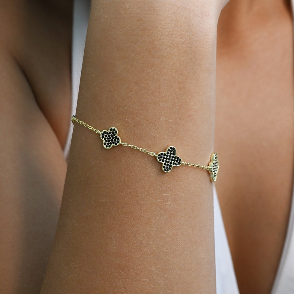 Pozlacený náramek se čtyřlístky 13108.3 černý