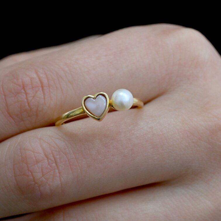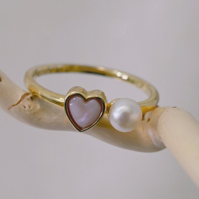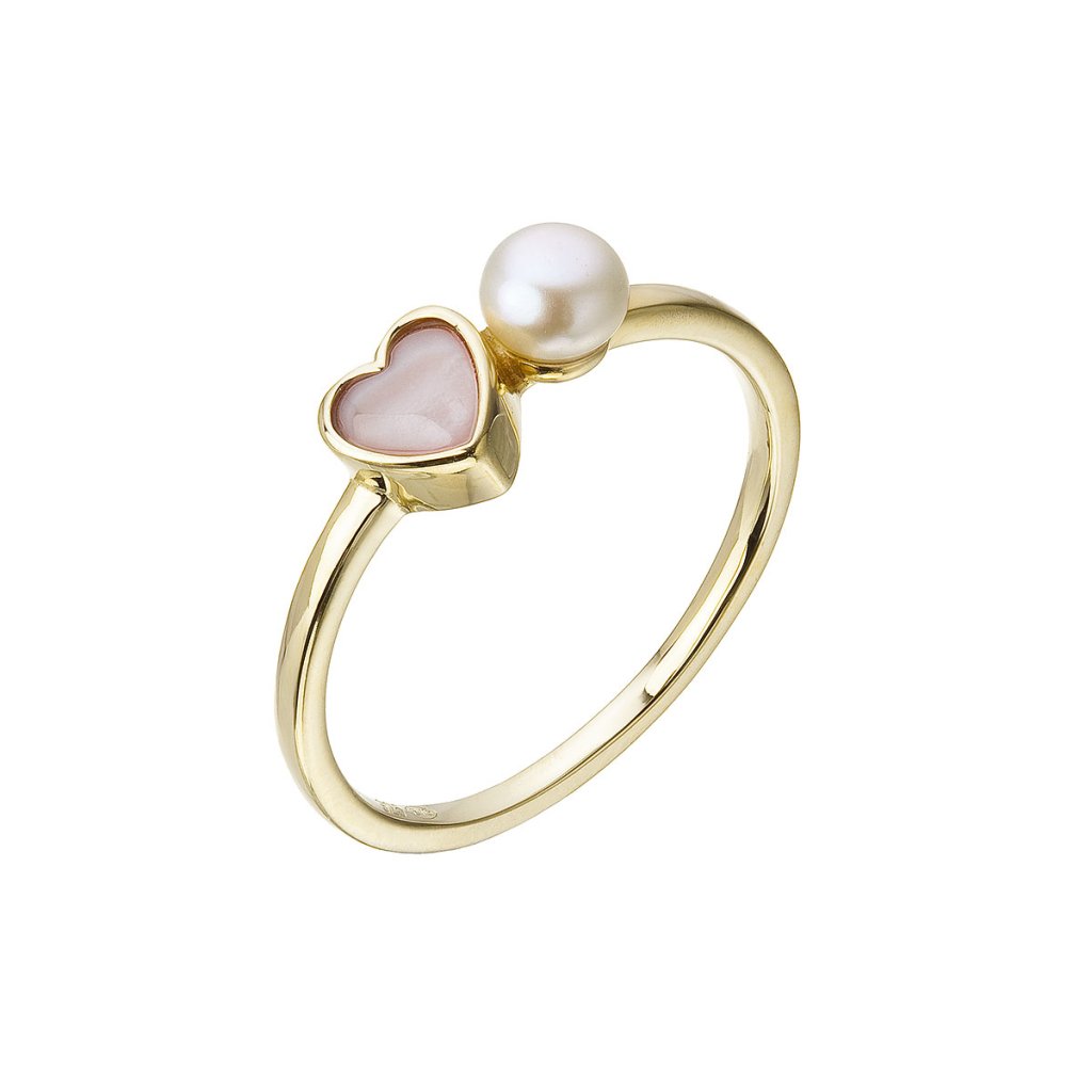 Pozlacený prsten s říční perlou a srdcem 25004.1
