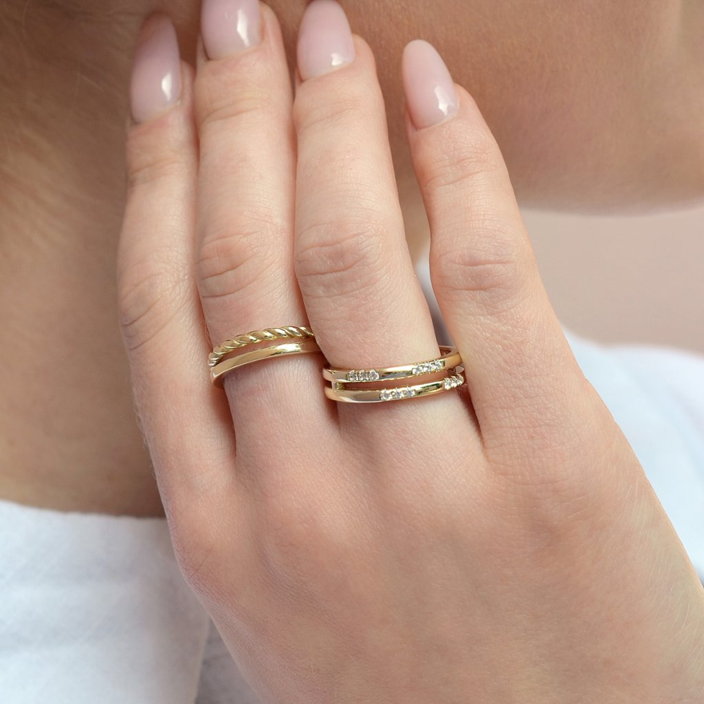 Pozlacený stříbrný dvojitý prsten 65021