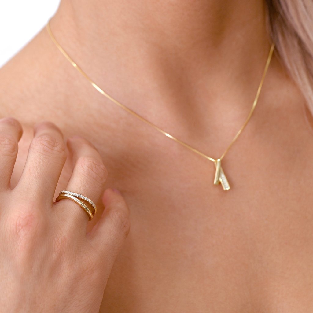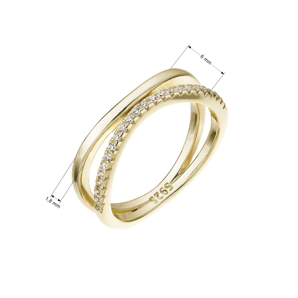 Šperk je vyroben z pozlaceného stříbra ryzosti 925/1000. Moderní prsten je ze dvou kroužků ve tvaru vlnky, jeden je lesklý a druhý osázený třpytivými zirkony a působí luxusně. Díky různým velikostem krásně sedne na každému – ideální pro každodenní nošení i speciální příležitosti.