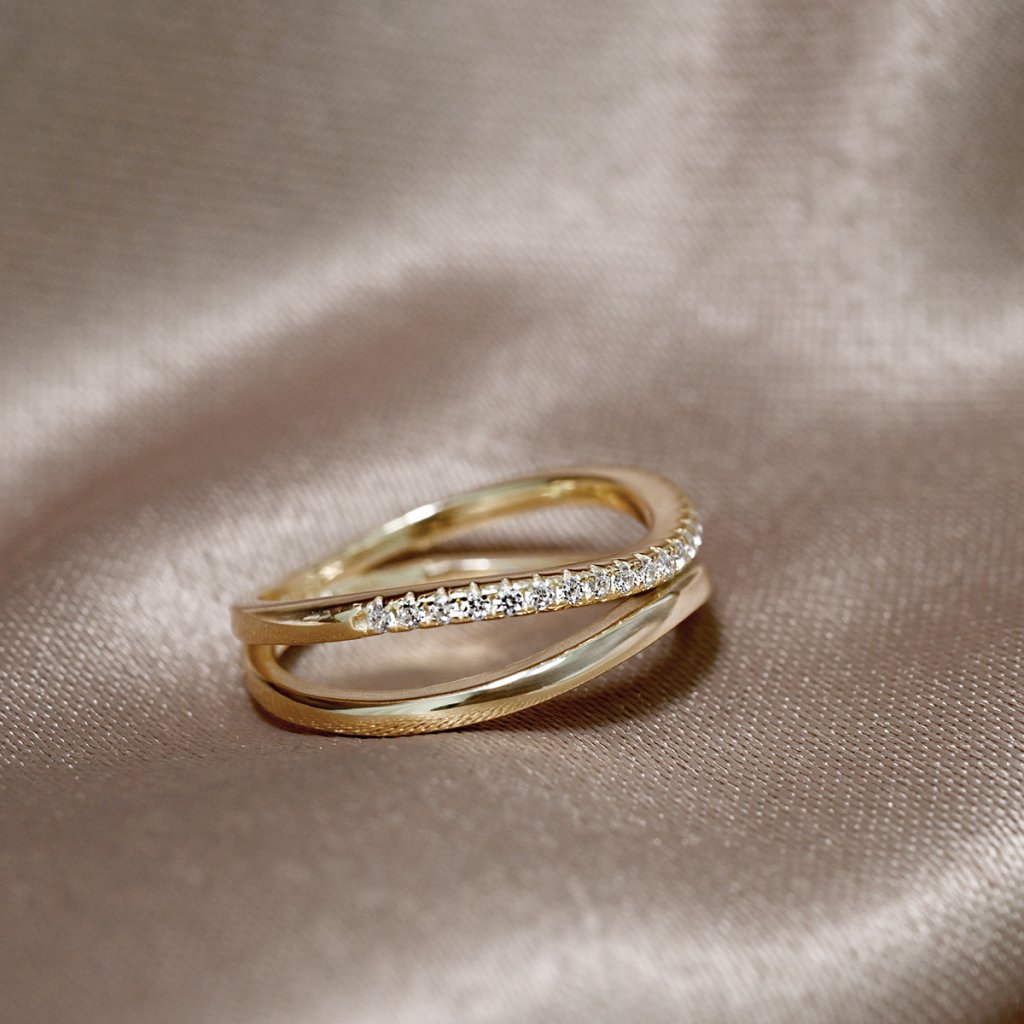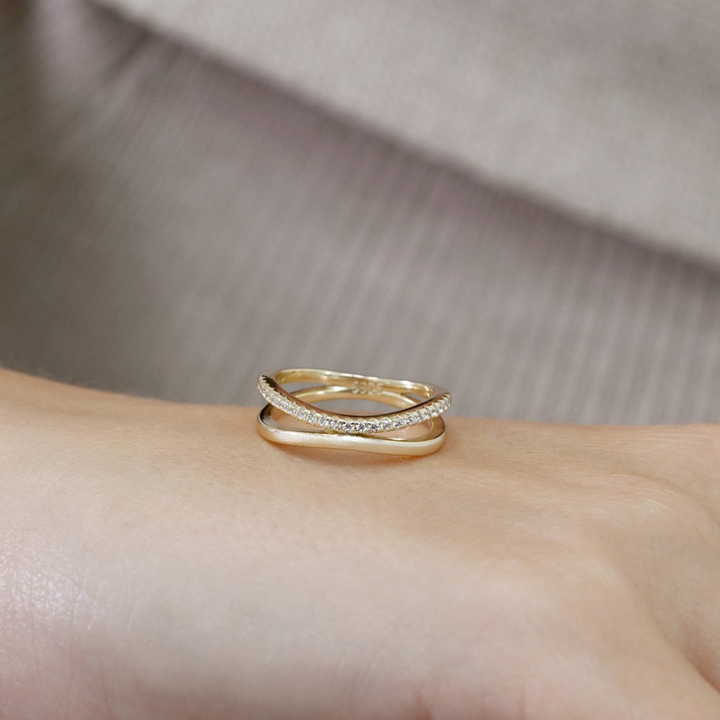 Zářivý dvojitý prsten "vlnky", který zaujme na první pohled je symbolem elegance a ženské jemnosti.