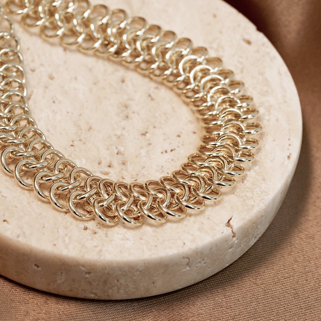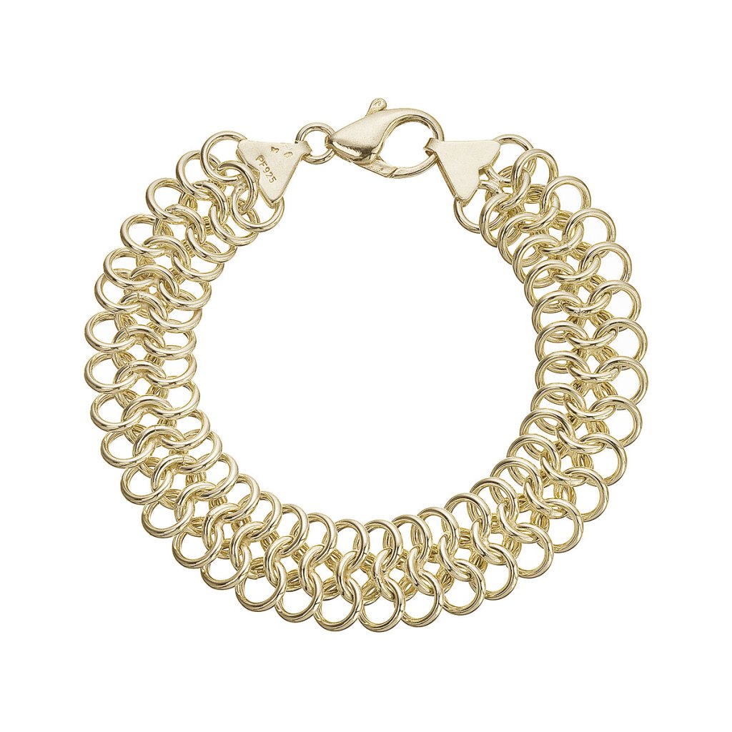 Precizně propletený náramek z pozlaceného stříbra okouzlí především svým hustým vzorem. Díky síťovinové struktuře působí luxusně a zároveň jemně.