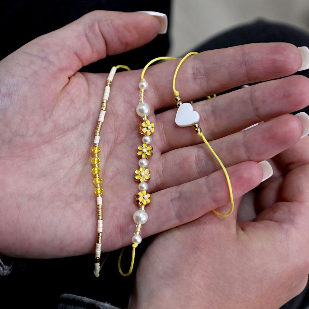 Sada 3 barevných náramků — tři originální kousky, které spolu nádherně ladí. Každý náramek je vzhledově jiný, můžete je nosit dohromady pro výrazný look nebo jednotlivě podle nálady a outfitu. Ideální doplněk, který oživí každý outfit.