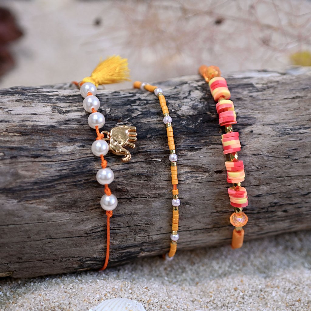 Sada 3 barevných náramků — tři originální kousky, které spolu nádherně ladí. Každý náramek je vzhledově jiný, můžete je nosit dohromady pro výrazný look nebo jednotlivě podle nálady a outfitu. Ideální doplněk, který oživí každý outfit.