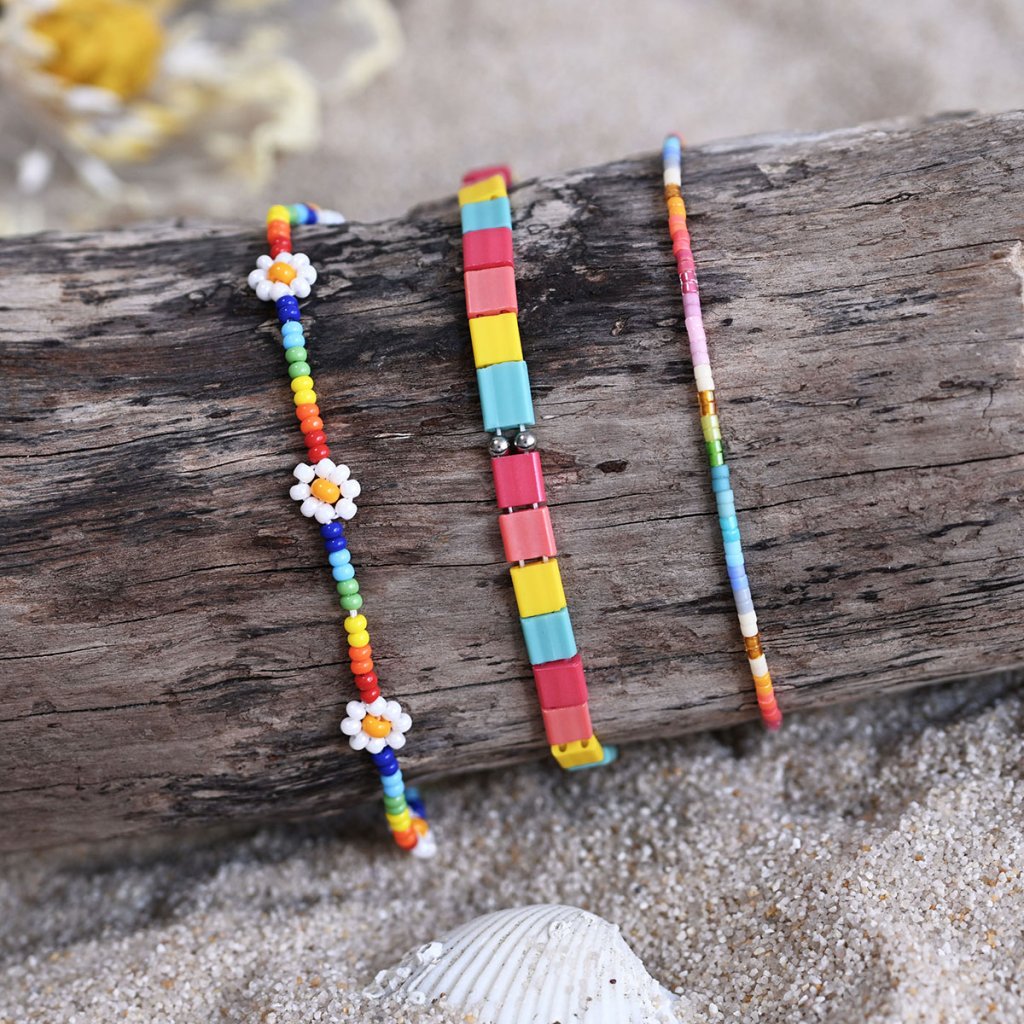 Sada 3 barevných náramků — tři originální kousky, které spolu nádherně ladí. Každý náramek je vzhledově jiný, můžete je nosit dohromady pro výrazný look nebo jednotlivě podle nálady a outfitu. Ideální doplněk, který oživí každý outfit.
