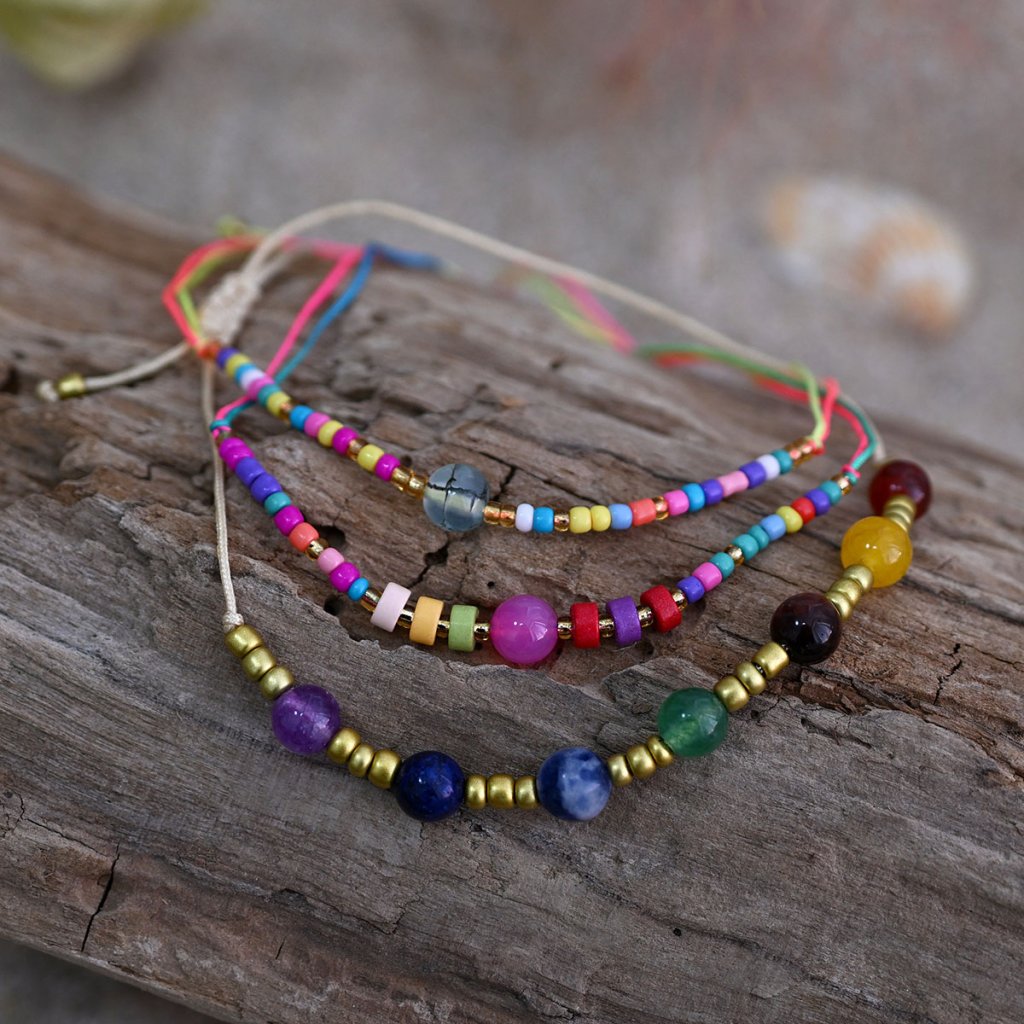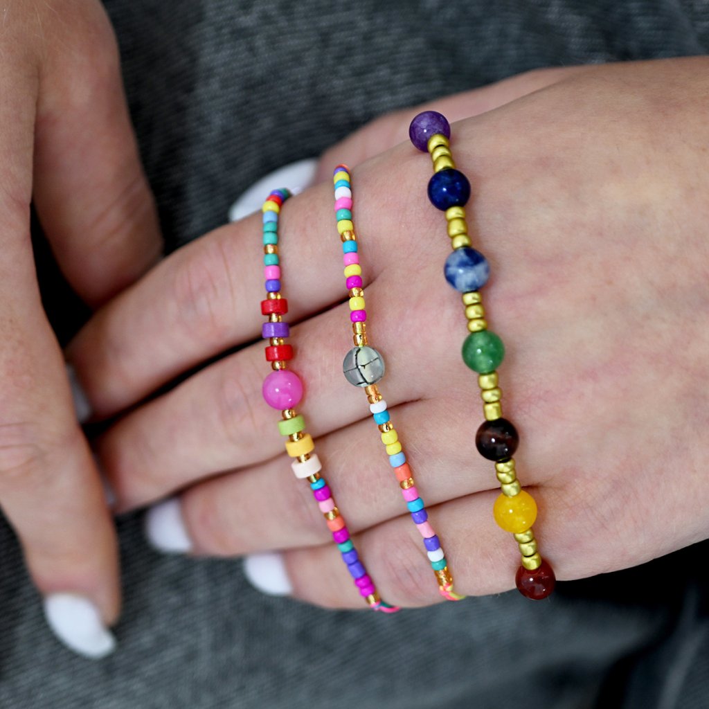 Sada 3 barevných náramků — tři originální kousky, které spolu nádherně ladí. Každý náramek je vzhledově jiný, můžete je nosit dohromady pro výrazný look nebo jednotlivě podle nálady a outfitu. Ideální doplněk, který oživí každý outfit.