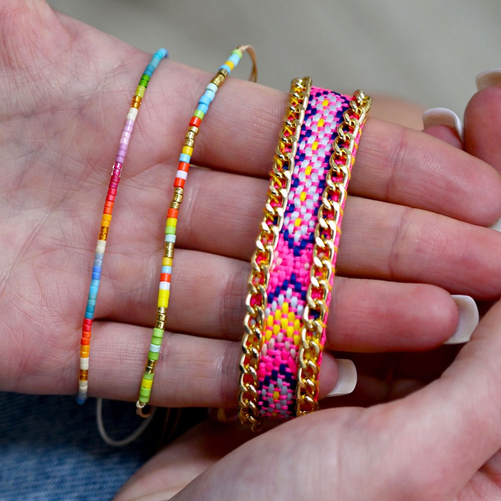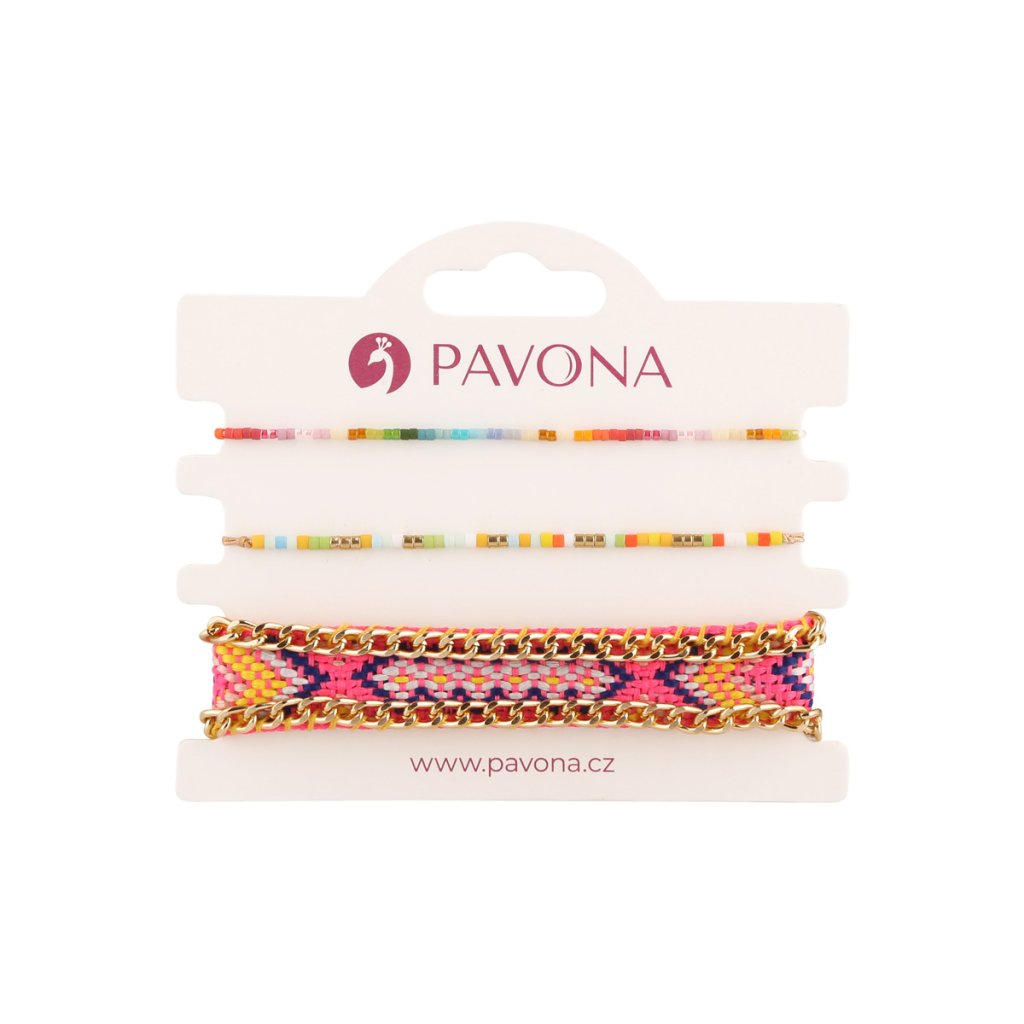 Sada 3 barevných náramků — tři originální kousky, které spolu nádherně ladí. Každý náramek je vzhledově jiný, můžete je nosit dohromady pro výrazný look nebo jednotlivě podle nálady a outfitu. Ideální doplněk, který oživí každý outfit.