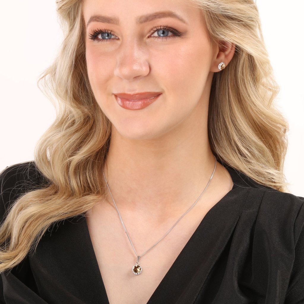 Sada šperků s krystaly Swarovski náušnice, řetízek a přívěsek hnědé oranžové kulaté 39352.3 light colorado topaz