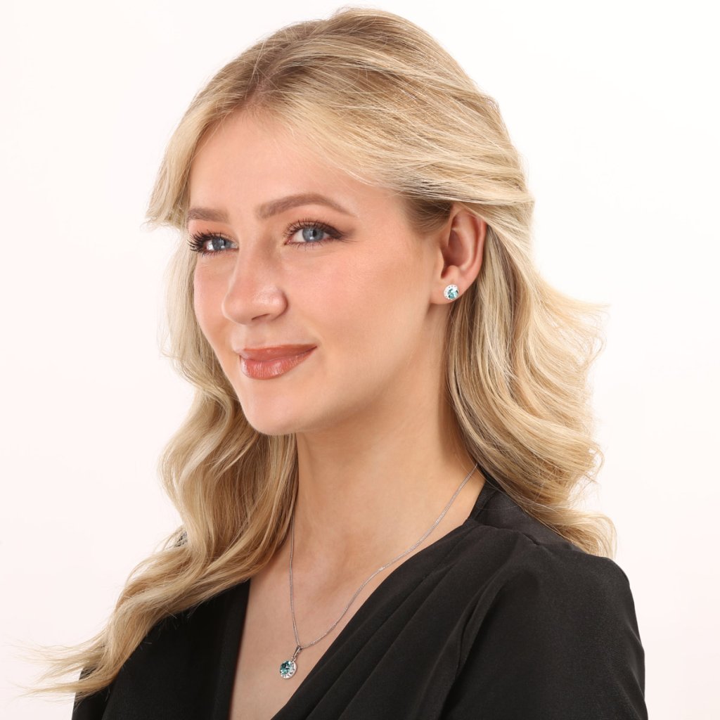 Parametry sady šperků s krystaly Swarovski náušnice, řetízek a přívěsek modré kulaté 39352.3