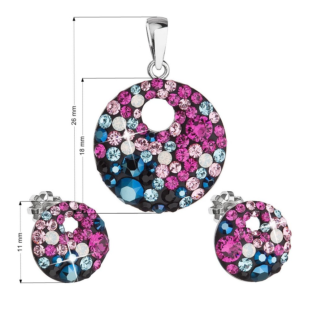 Parametry sady šperků s krystaly Swarovski náušnice a přívěsek mix barev kulaté 39148.4
