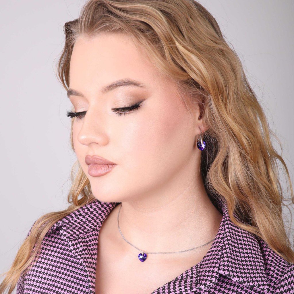 Parametry sady šperků s krystaly Swarovski náušnice a přívěsek modrá srdce 39003.5 heliotrope