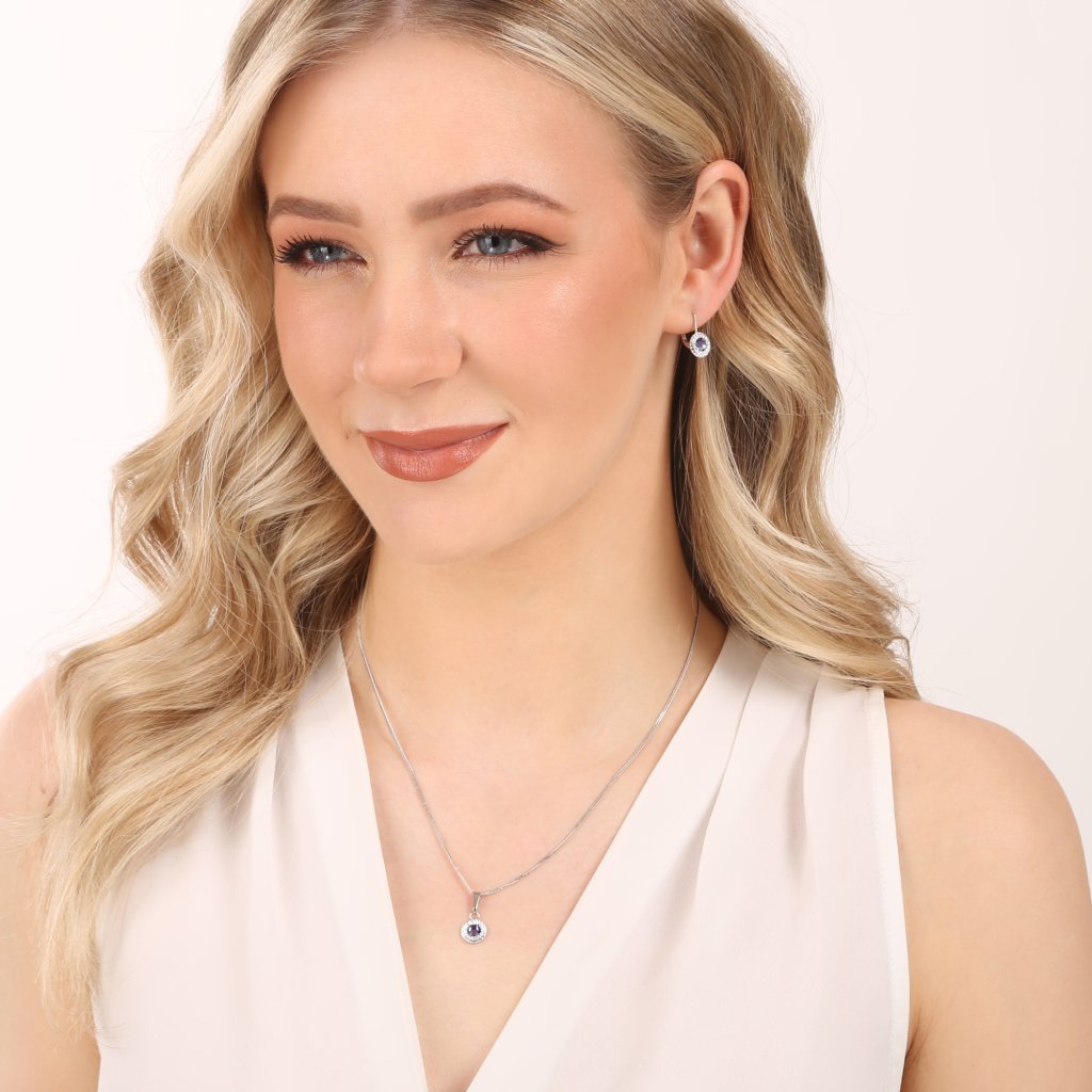 Přívěsek i náušnice jsou zdobeny Swarovski krystalem modré barvy, který je olemován ještě malými třpytivými Swarovski krystalky v bílé barvě. Náušnice mají zapínání na klapku. Jelikož šperky neobsahuji žádný přídavek niklu, mohou je bez obav nosit i alergici. Šperky jsou vyrobeny ze stříbra ryzosti 925/1000, které prošlo povrchovou úpravou rhodiem. Rhodium chrání šperk proti zčernání, zežloutnutí i poškrábání.