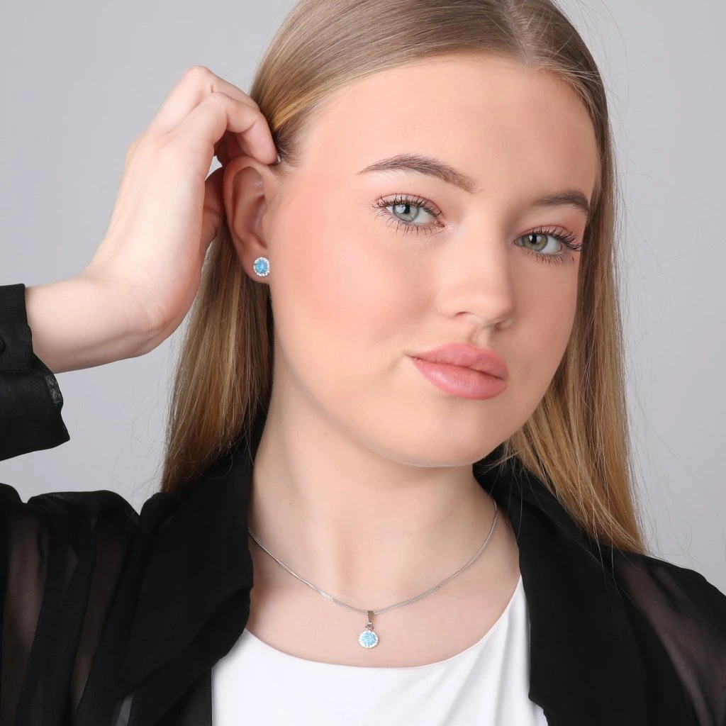 Sada šperků se syntetickým opálem a krystaly Preciosa náušnice a přívěšek světle modré kulaté 39160.1