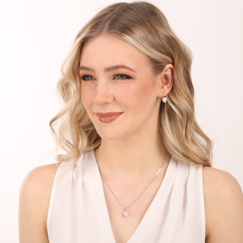 Ozdobte se originálními a elegantními šperky ze soupravy 39161.1, které se hodí k jakémukoliv outfitu.Sada 39161.1 obsahuje visací náušnice a řetízek s přívěskem ve tvaru srdíčka. Šperky jsou vyrobeny ze stříbra ryzosti 925/1000, které prošlo povrchovou úpravou rhodiem. Rhodium chrání šperk proti zčernání, zežloutnutí i poškrábání. Přívěšek i náušnice jsou zdobeny růžovým syntetickým opálem, který je navíc olemován ještě malými třpytivými Preciosa krystalky v bílé barvě. Náušnice mají zapínání na klapku. Jelikož šperky neobsahuji žádný přídavek niklu, mohou je bez obav nosit i alergici.