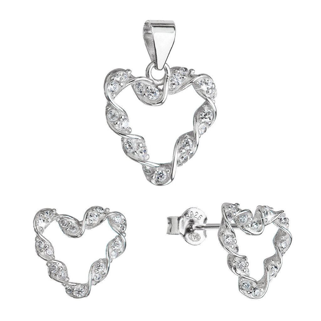 Sada šperků se zirkony náušnice a přívěsek bílá zakroucená srdíčka 19031.1