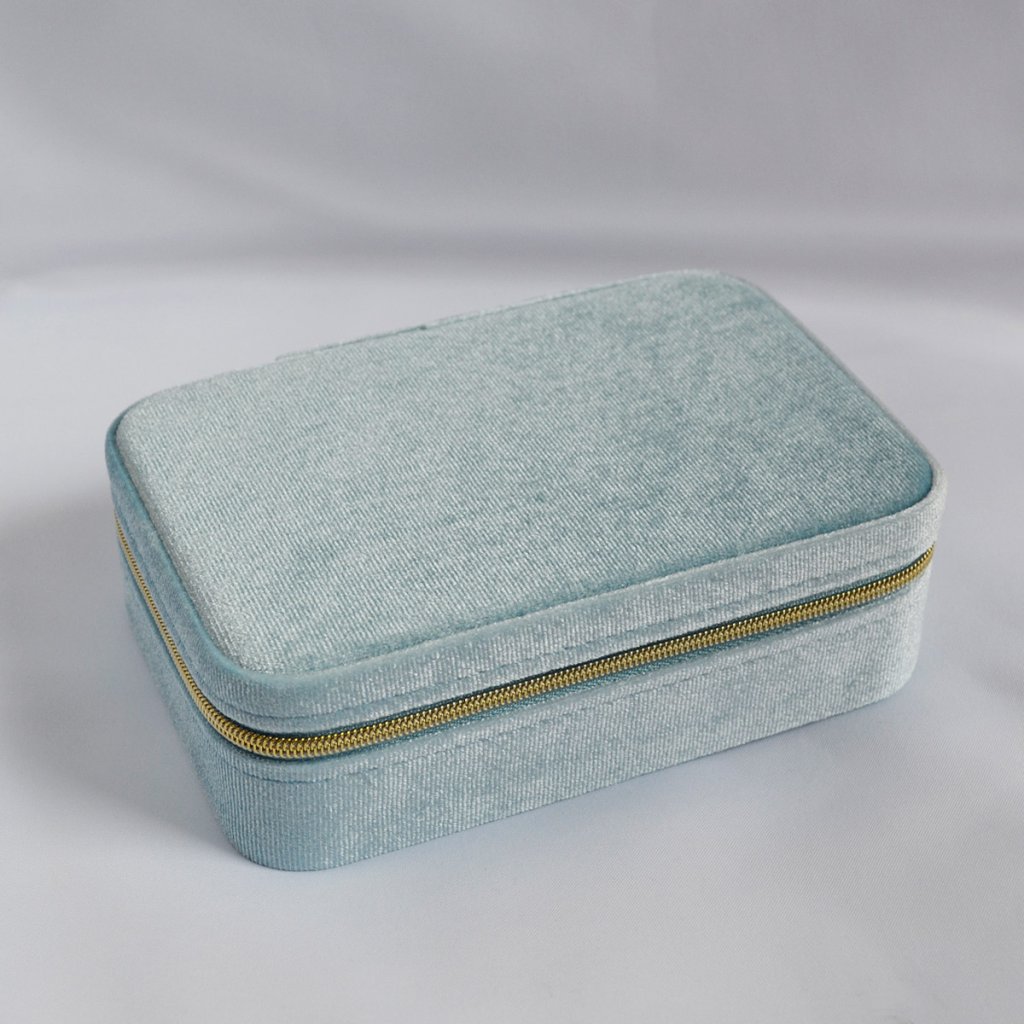 Obdélníková šperkovnice II. jakosti v jemné modré barvě je ideálním řešením pro bezpečné a stylové uložení vašich šperků doma i na cestách. Díky praktickým rozměrům 15 × 10,5 × 5 cm nabízí dostatek prostoru, a přesto se snadno vejde do kabelky, kufru či batohu.