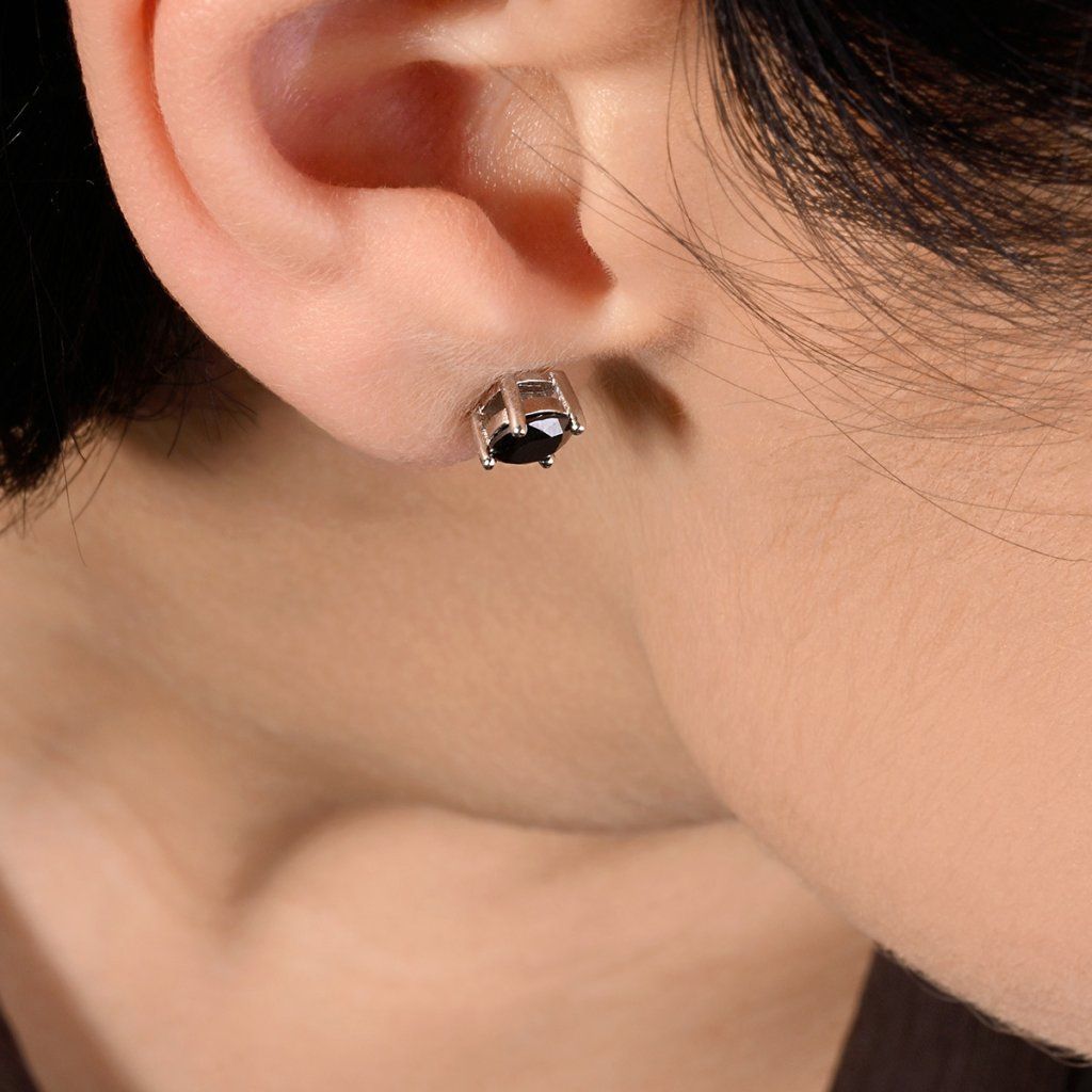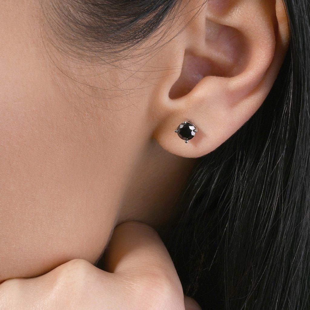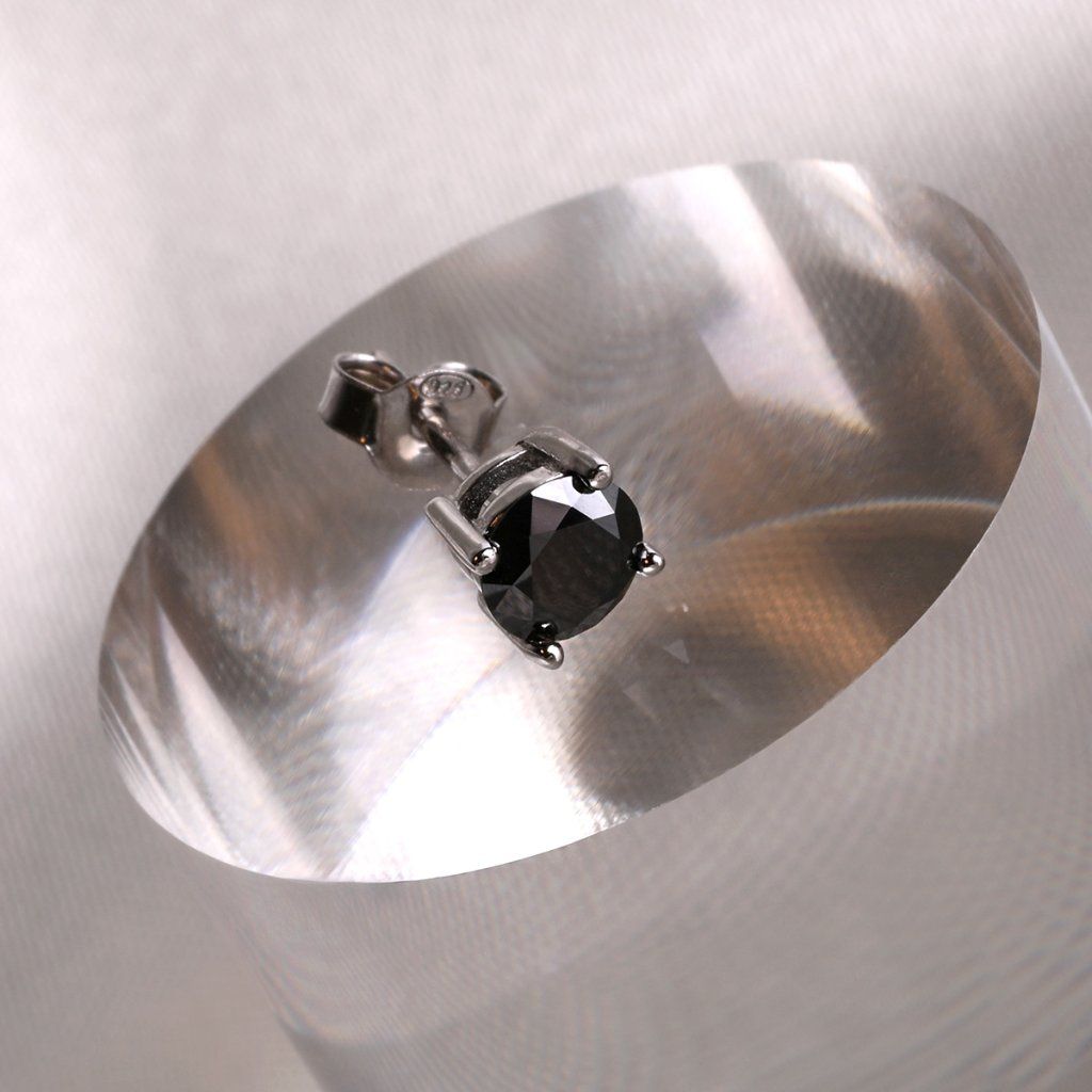 Srdcem náušnice je dokonale broušený kulatý moissanit v hluboké, podmanivé černé barvě. Na rozdíl od svého čirého protějšku neodráží světlo oslnivým třpytem, ale nabízí sofistikovaný, skelný lesk, který přitahuje pozornost svou hloubkou a jedinečností.