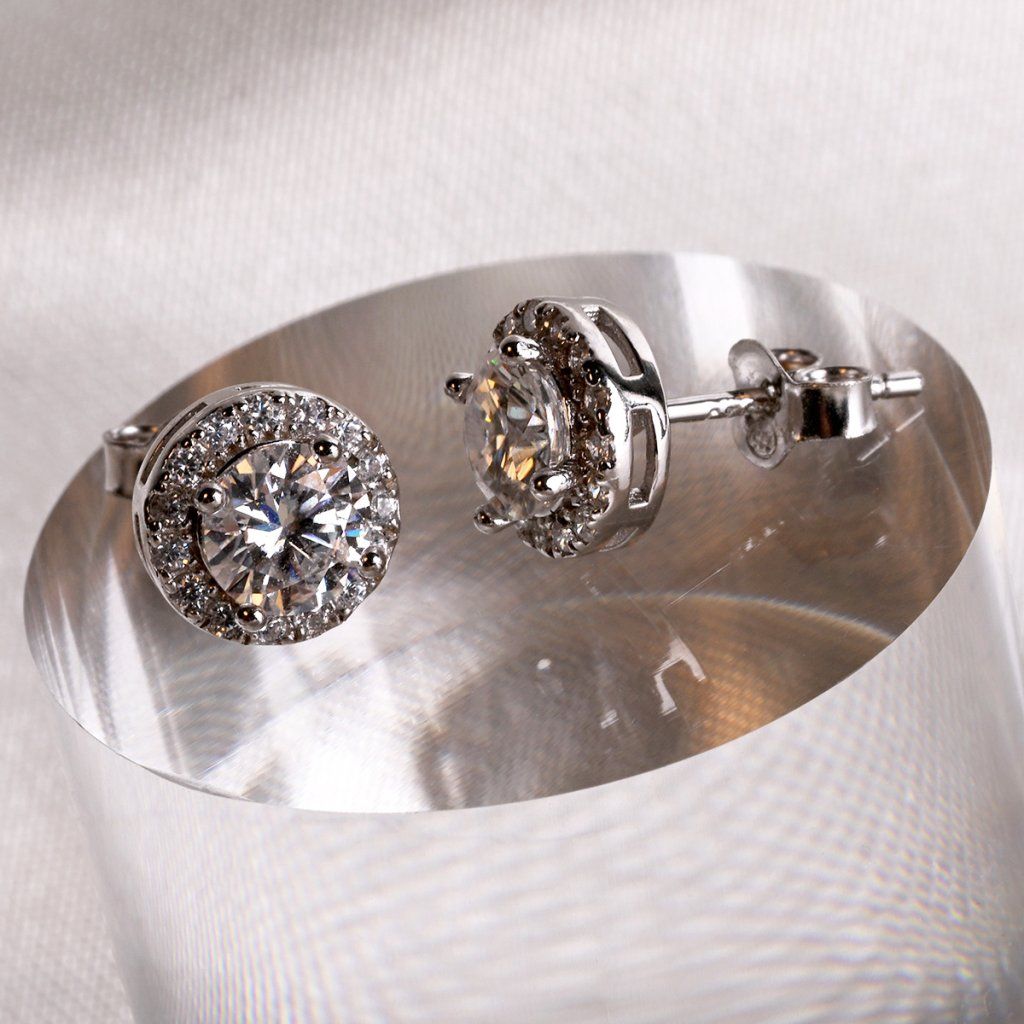 Stříbrné náušnice AURORA 11M00003 moissanite