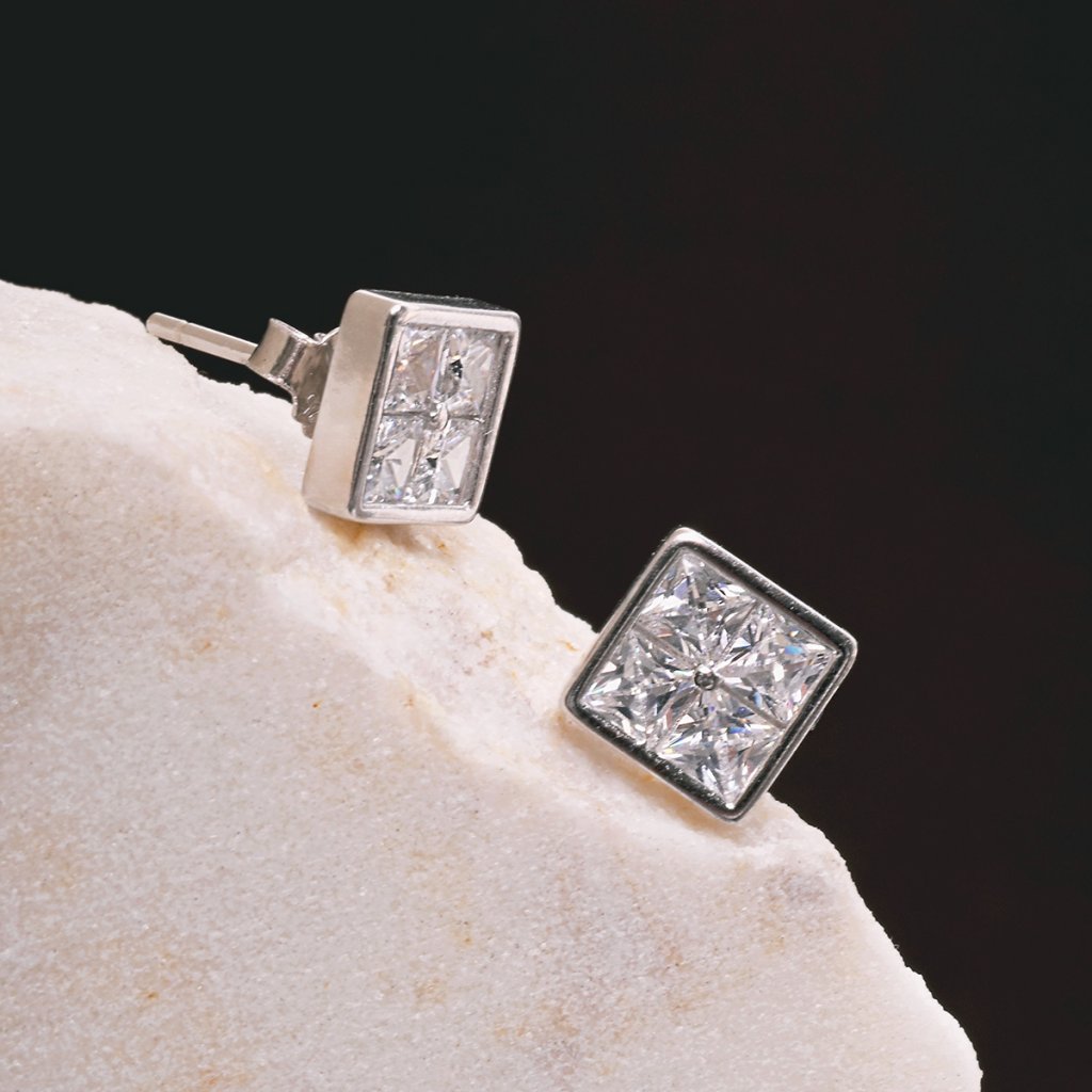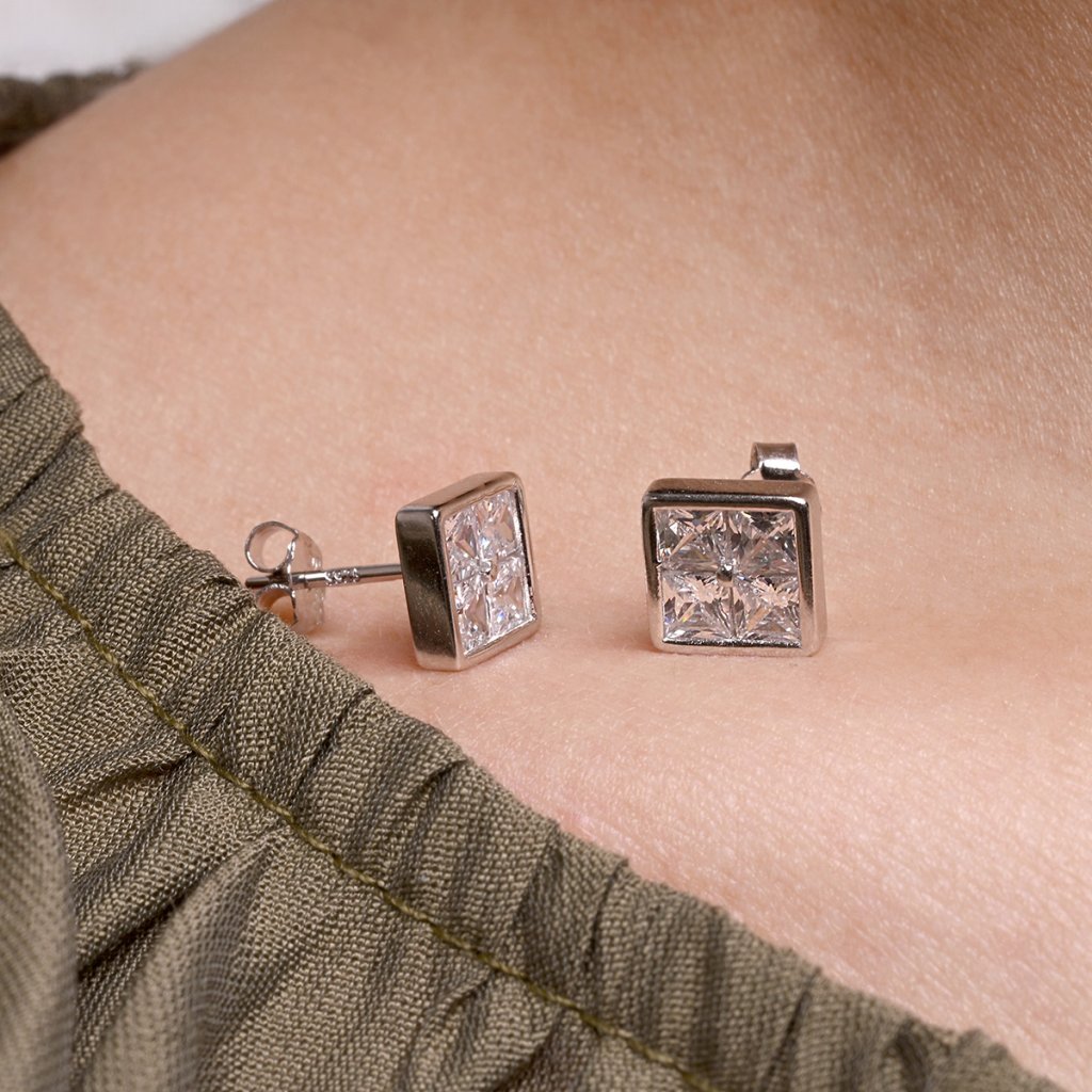 Stříbrné náušnice čtverečky se zirkony 11748.1
