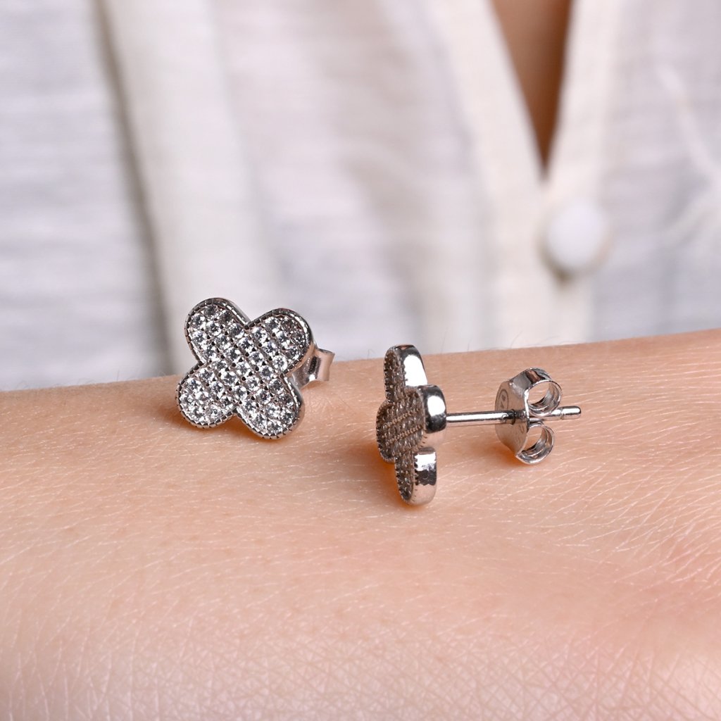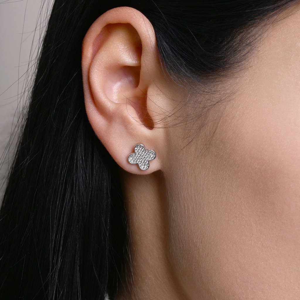 Náušnice jsou vyrobeny z rhodiovaného stříbra ryzosti 925/1000, které zaručuje kvalitu a trvalý lesk. Originální design s jemně tvarovaným ozdobným okrajem dodává těmto náušnicím neopakovatelný charakter. Každý lísteček čtyřlístku je precizně osázen drobnými zirkony, které při sebemenším pohybu rozehrávají nádhernou hru světla.