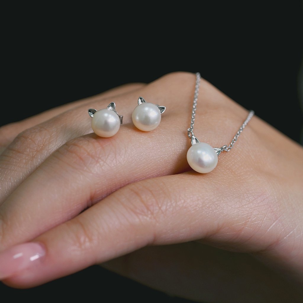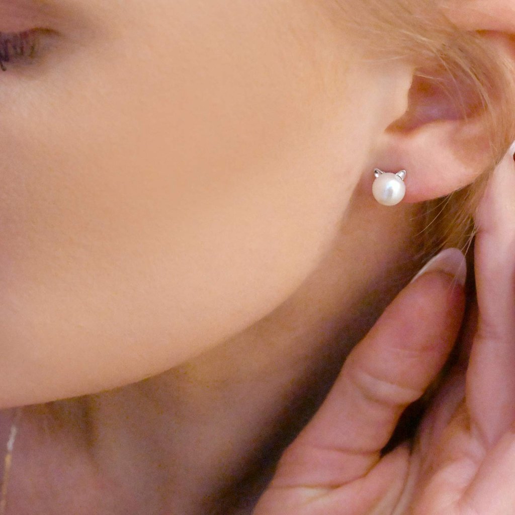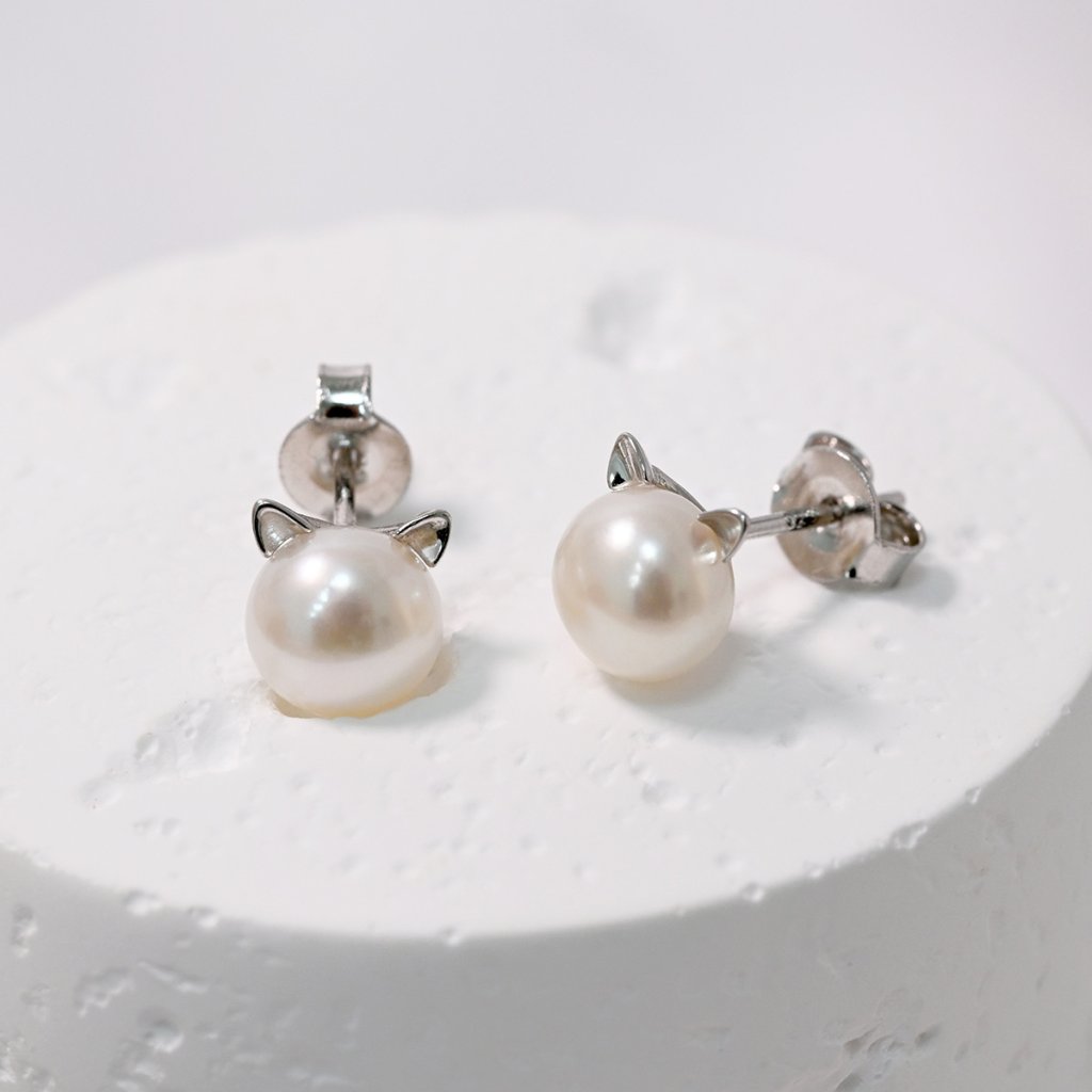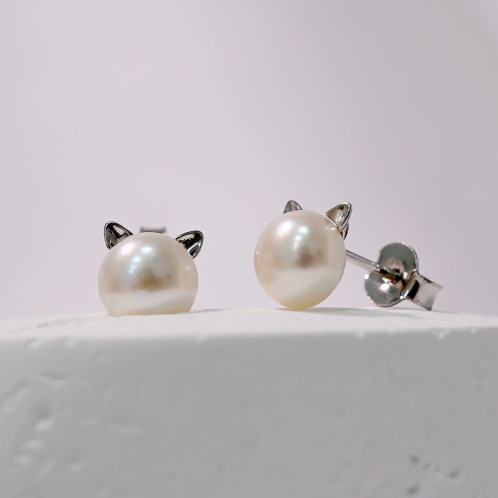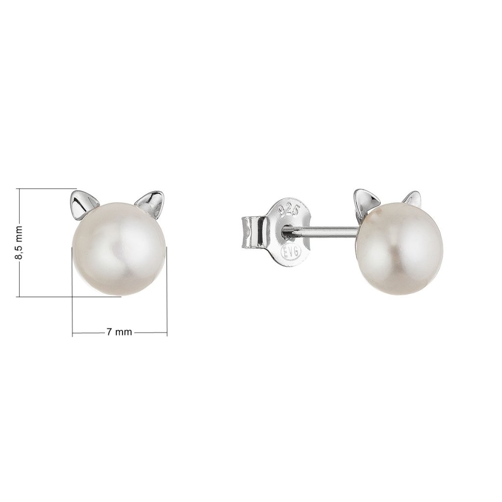 Stříbrné náušnice kočičky s říční perlou 21117.1