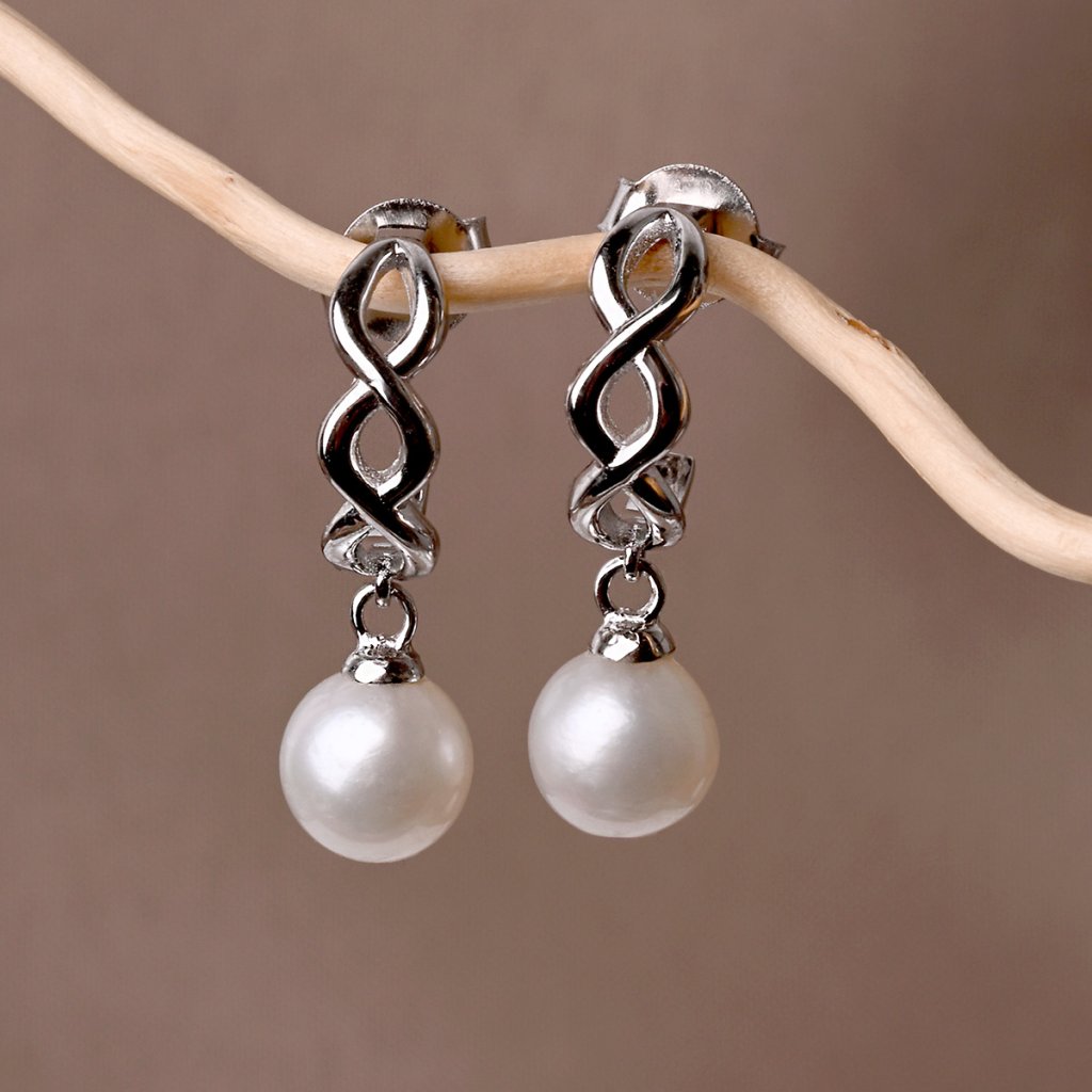 Stříbrné náušnice se zavěšenou říční perlou 21125.1