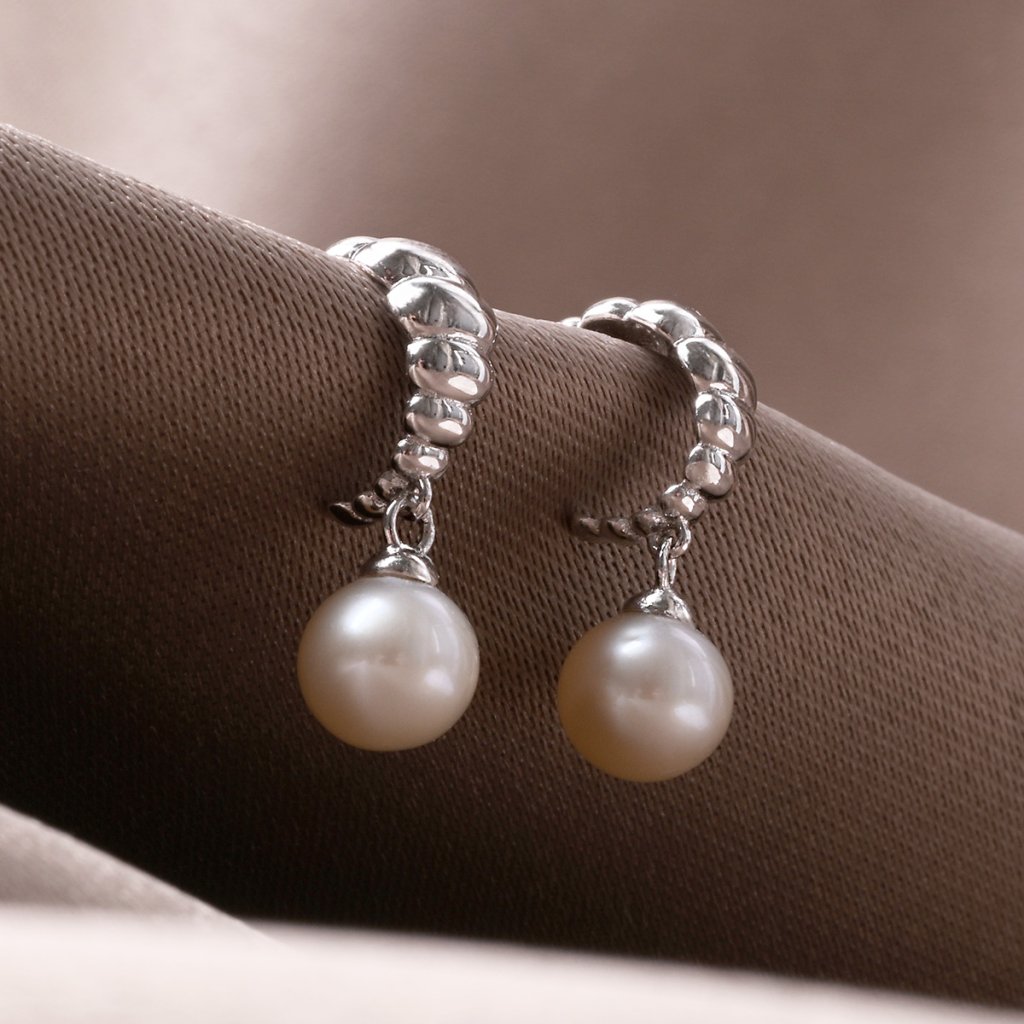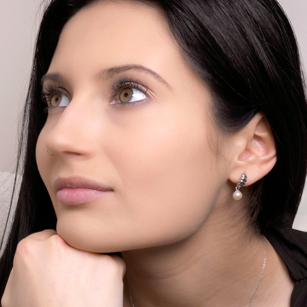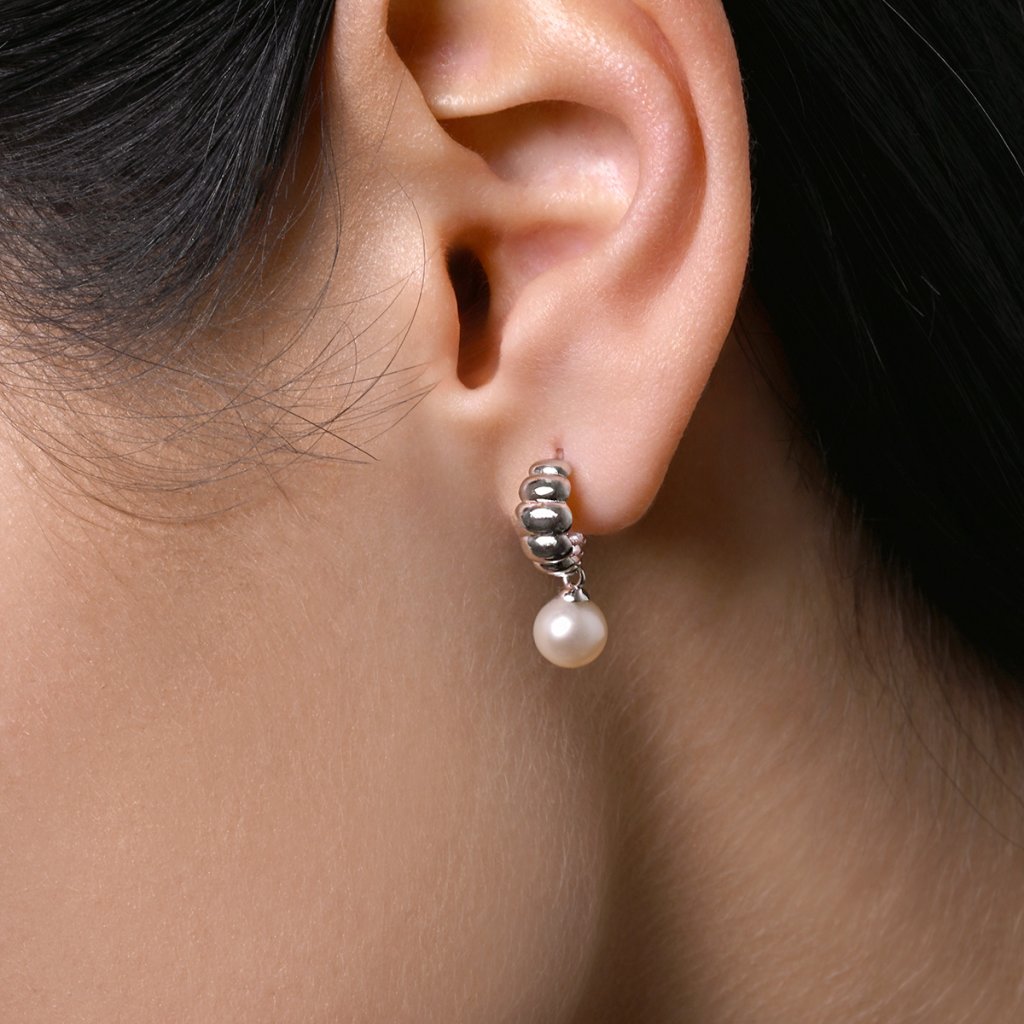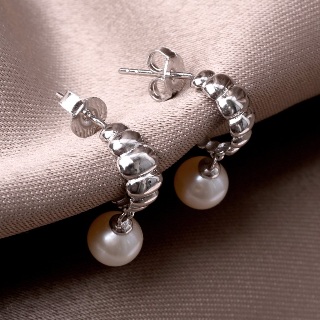 Stříbrné náušnice se zavěšenou říční perlou 21126.1
