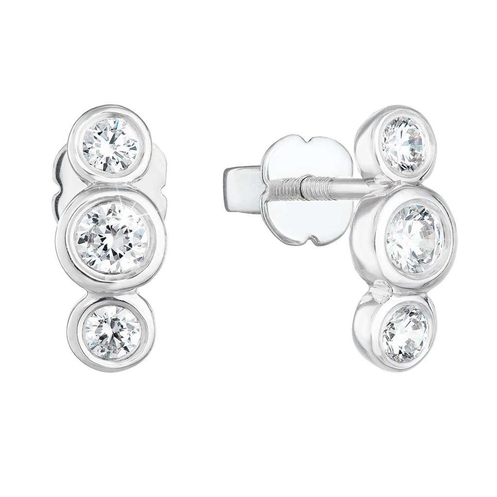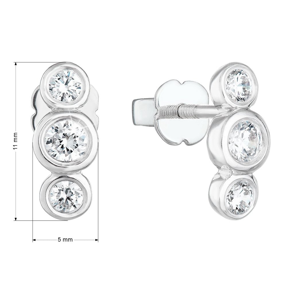 Parametry stříbrných náušnic pecka se třemi zirkony v bílé barvě 881009.1