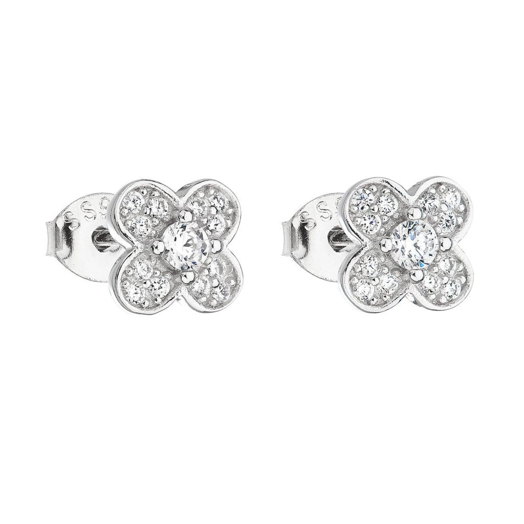 Stříbrné náušnice pecka se zirkonem bílá kytička 11148.1