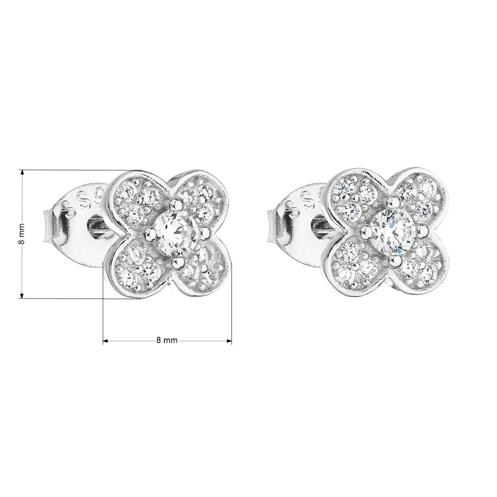 Parametry stříbrných náušnic pecka se zirkonem bílá kytička 11148.1