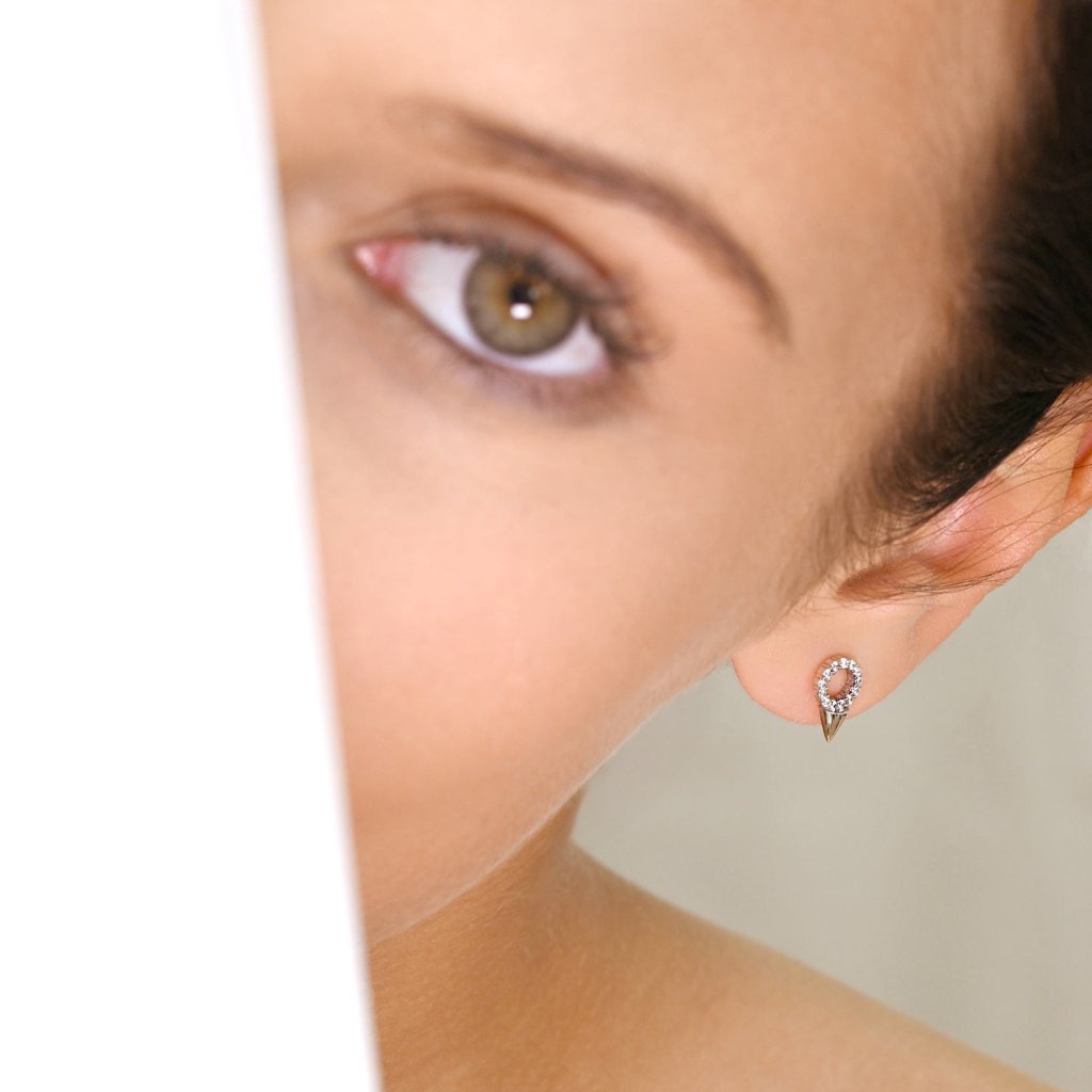 Kulaté naušnice jsou osázeny zirkony v bílé barvě, z kruhu visí malý stříbrný rampouch. Náušnice 11103.1 vyrobily zručné šperkařky z Jablonce nad Nisou, což dokazuje přiložená pečeť kvality.