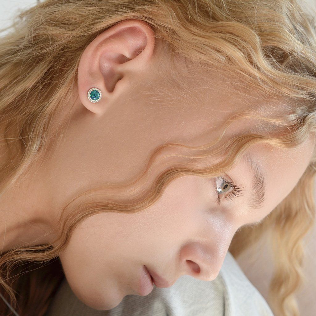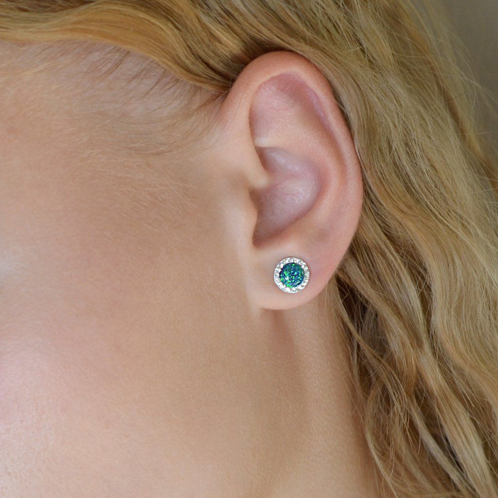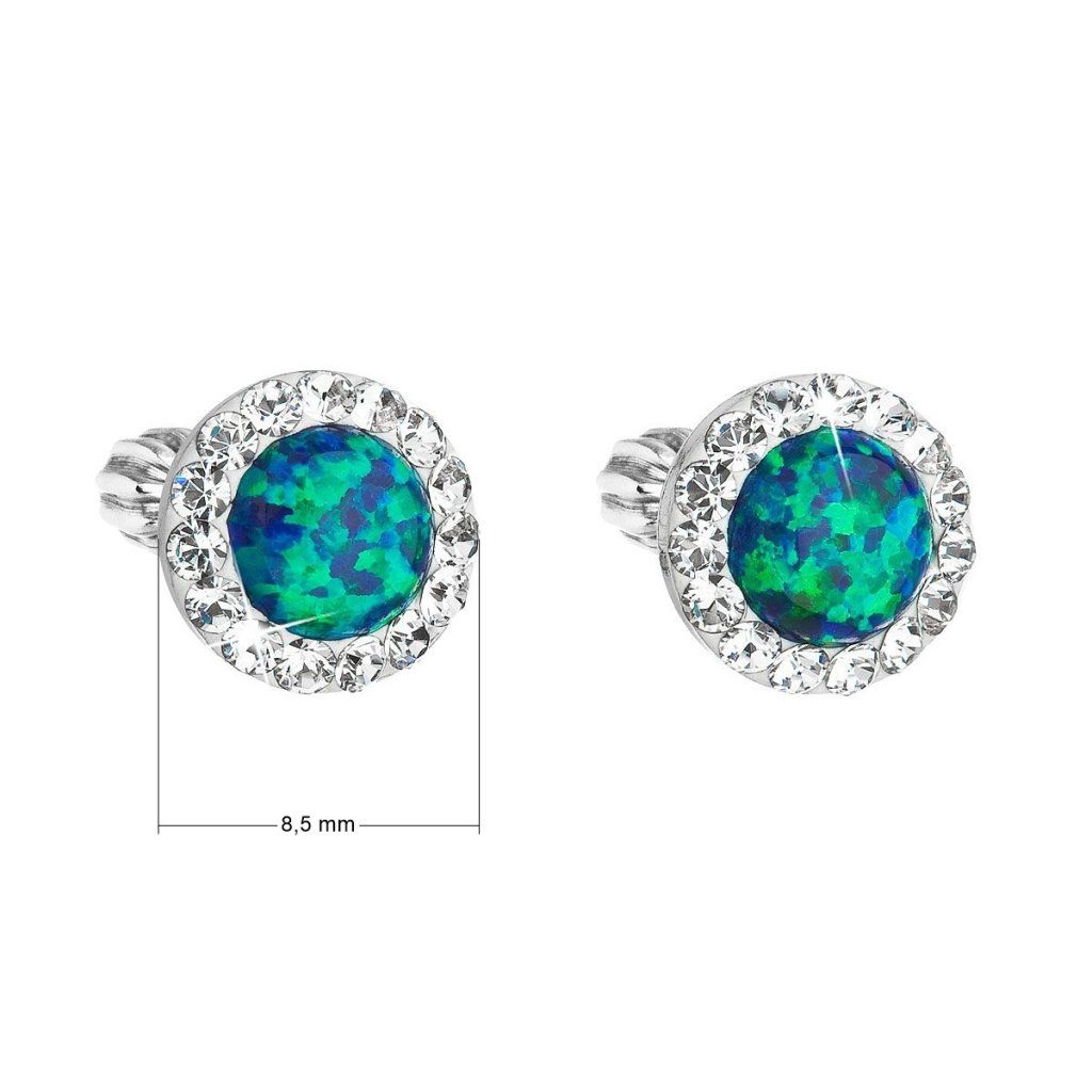 Stříbrné náušnice s opálem a krystaly Preciosa 31317.1 zelené