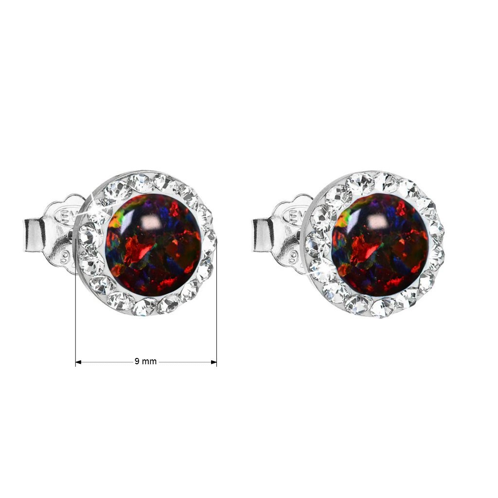 Stříbrné náušnice s opálem a Preciosa krystaly 31217.1 ruby