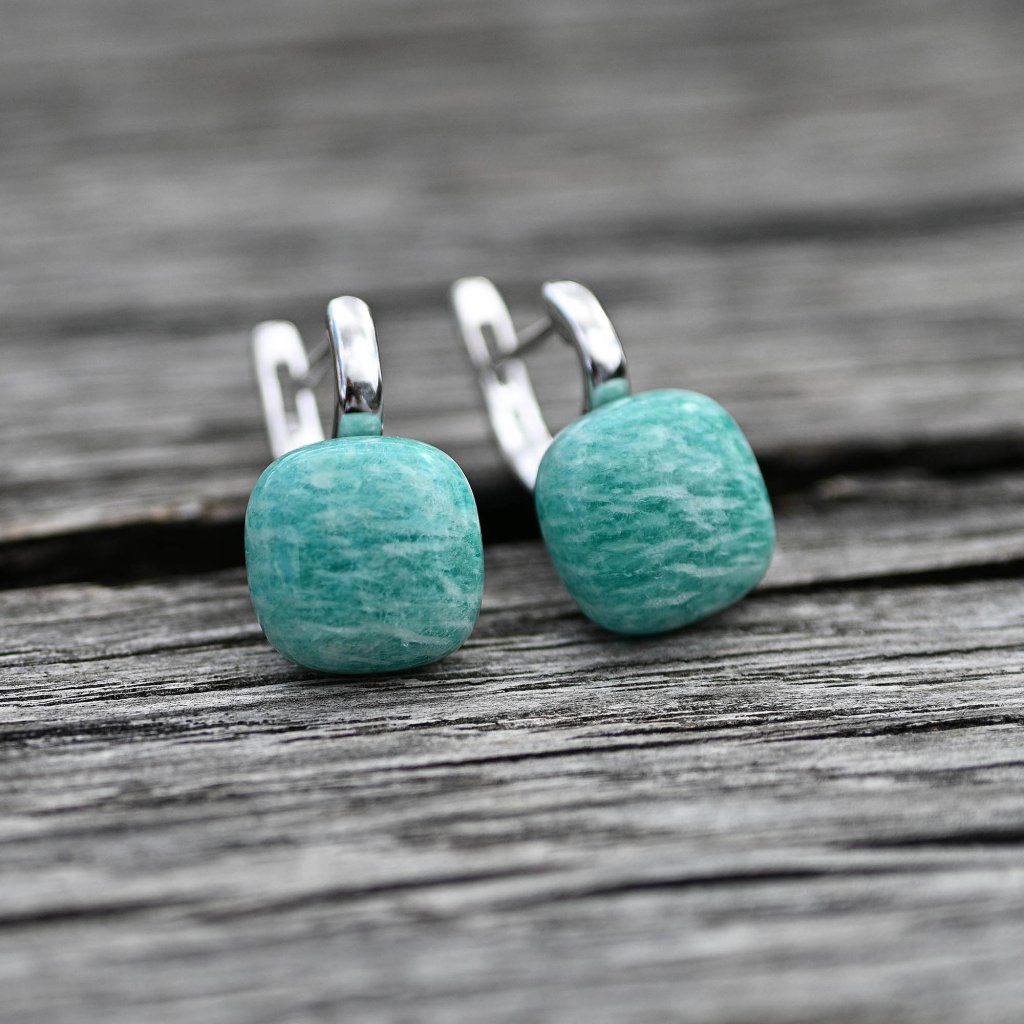 Stříbrné náušnice s pravým amazonitem - harmonické spojení elegance a přírodní energie.