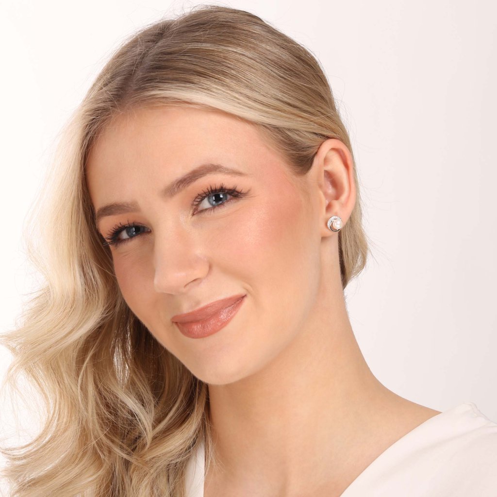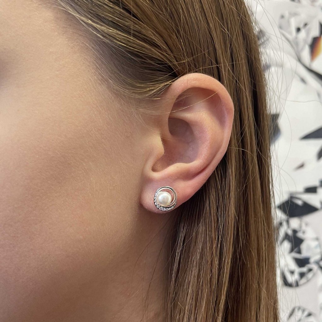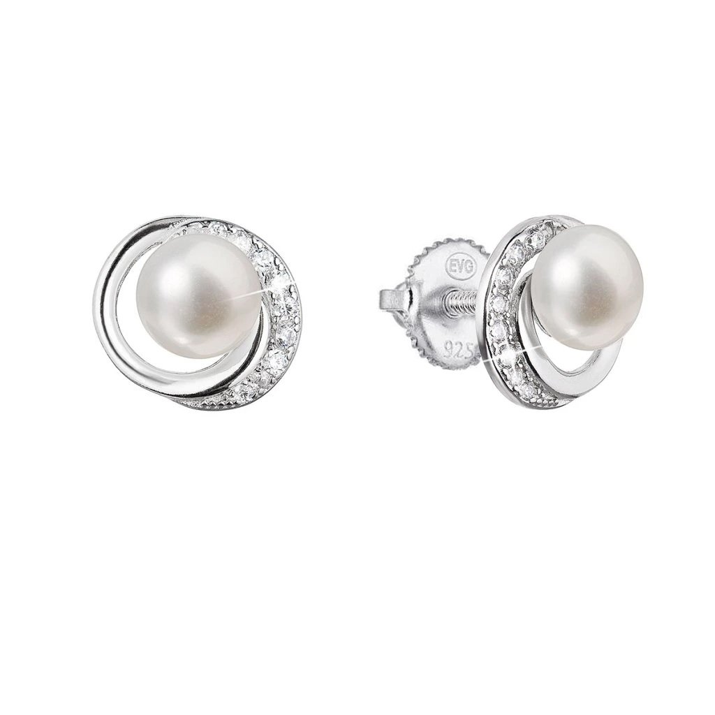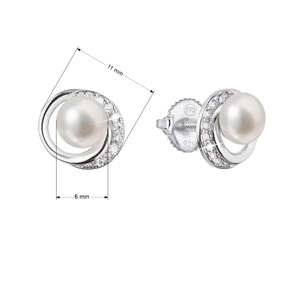Stříbrné náušnice kulatého tvaru se zirkony a bílou říční perlou jemně oživí každý Váš outfit.