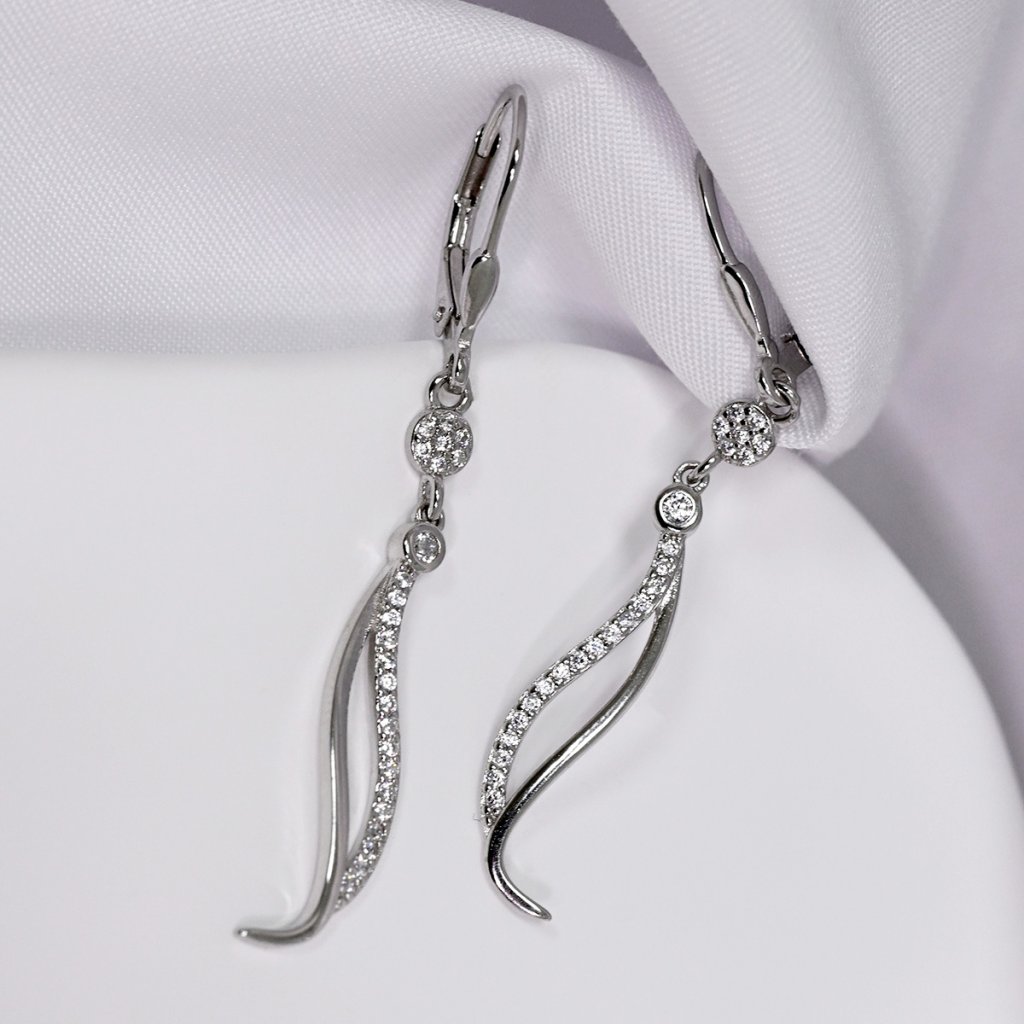 Stříbrné náušnice visací dlouhé vlnky 11541.1