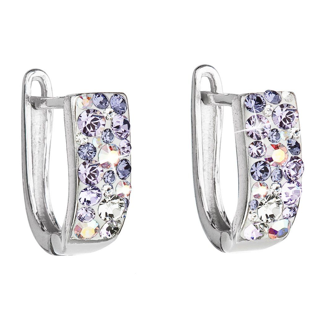 Visací náušnice 31123.3 violet ve tvaru půlkruhu jsou vyrobeny ze stříbra o ryzosti 925/1000 s povrchovou úpravou rhodiem a jsou zdobeny mnoha Swarovski krystaly v odstínech fialové a bílé. Díky Swarovski krystalům se náušnice nádherně třpytí. Náušnice zapnete na ruský patent, který je ochrání proti nechtěné ztrátě. Jelikož do náušnic není přidán nikl, mohou je bez obav nosit i alergici.