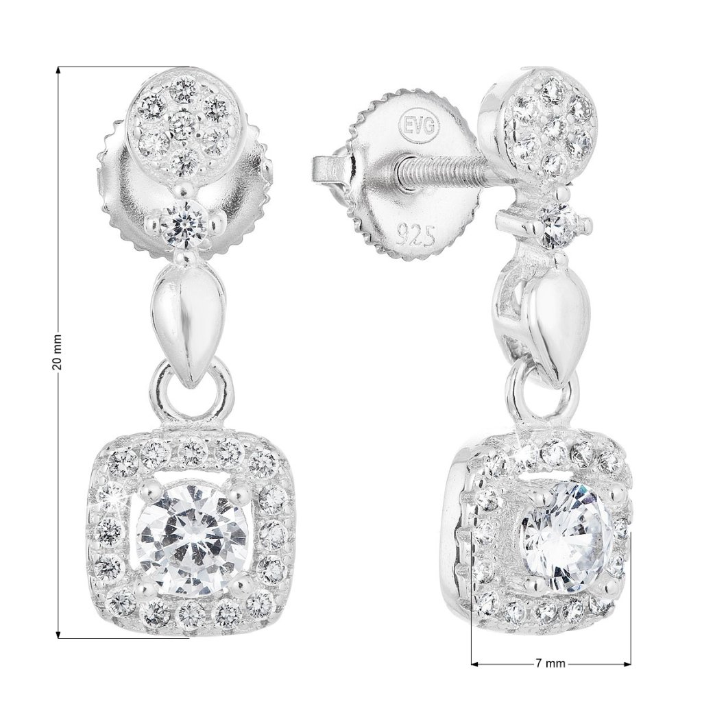 Stříbrné náušnice visací se zirkonem v bílé barvě 11329.1