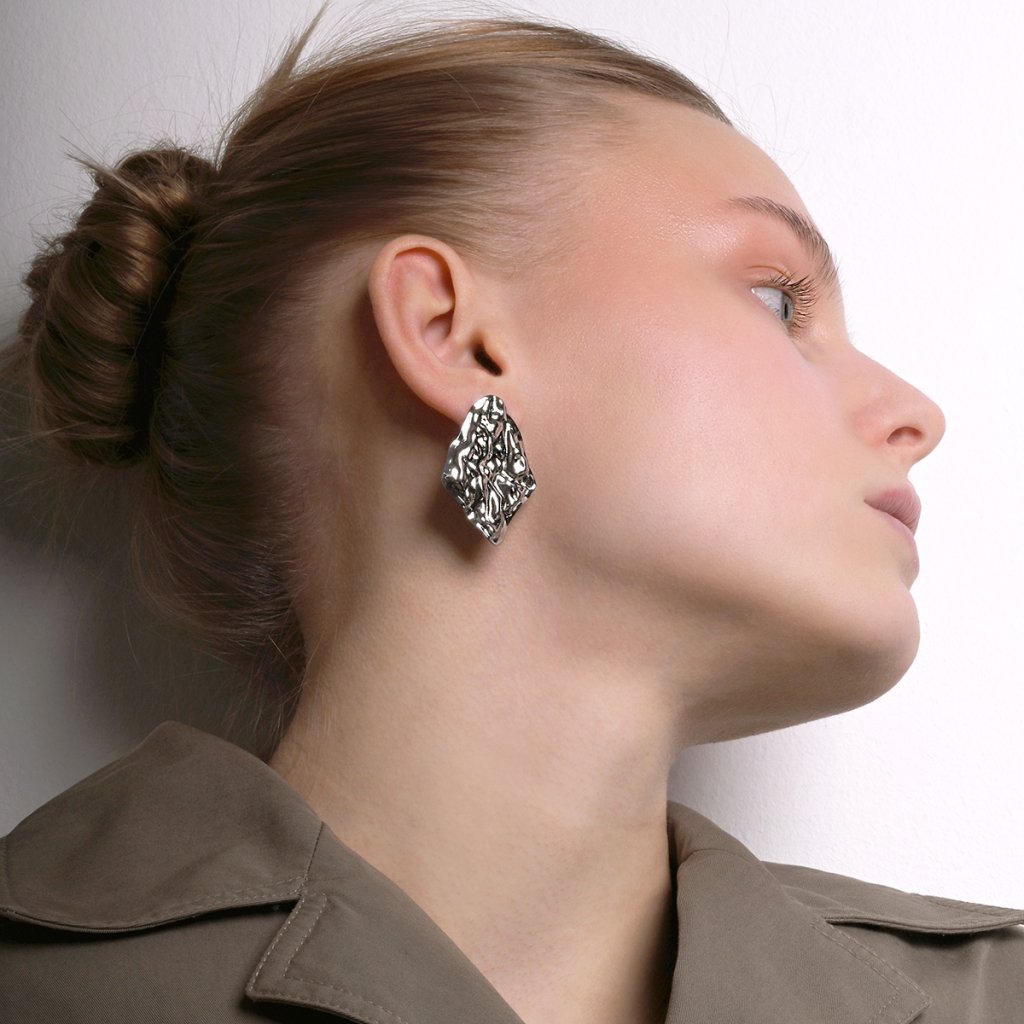Stříbrné ocelové náušnice zvlněné kosočtverce 41024.1