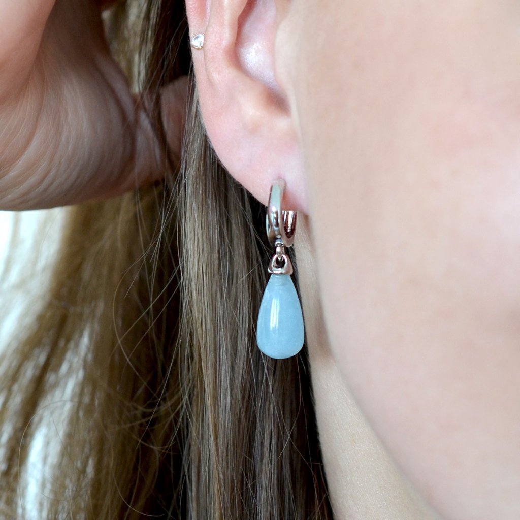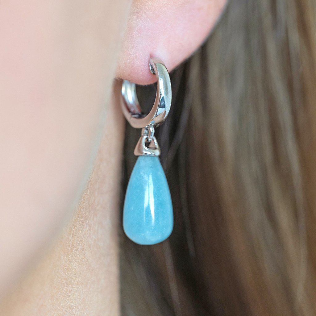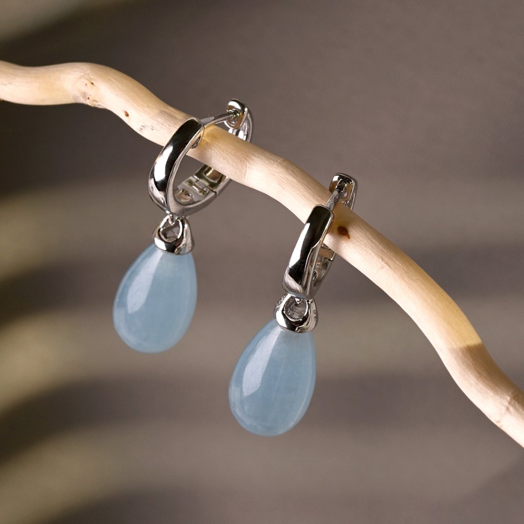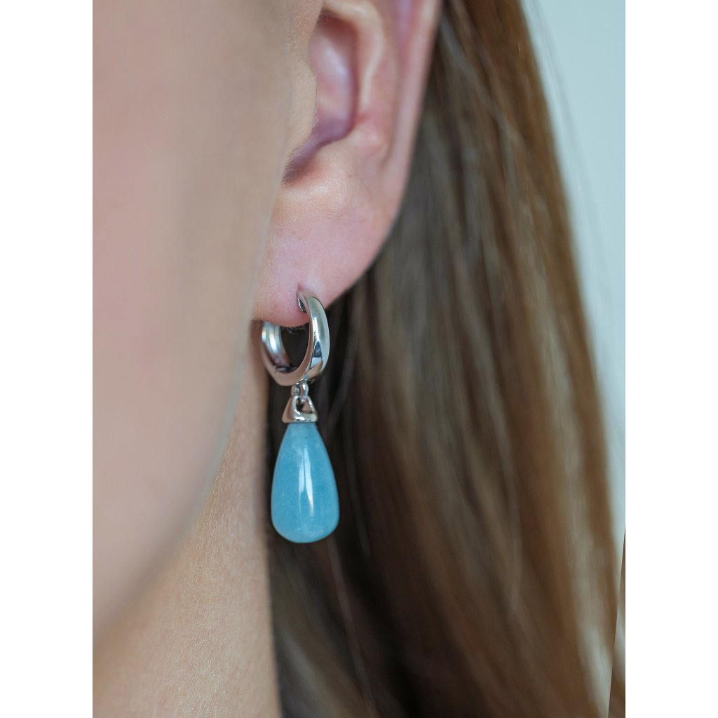 Náušnice jsou vyrobeny ze stříbra ryzosti 925/1000 s rhodiovou povrchovou úpravou, která dodává šperku luxusní stříbrný lesk a zároveň chrání před zčernáním a poškrábáním. Jejich jedinečný design kombinuje jemnost a dynamiku - pravý akvamarín ve tvaru něžné kapky se při každém pohybu lehce pohupuje, čímž vytváří elegantní a živý šperk. Náušnice mají spolehlivé zapínání na kroužek.