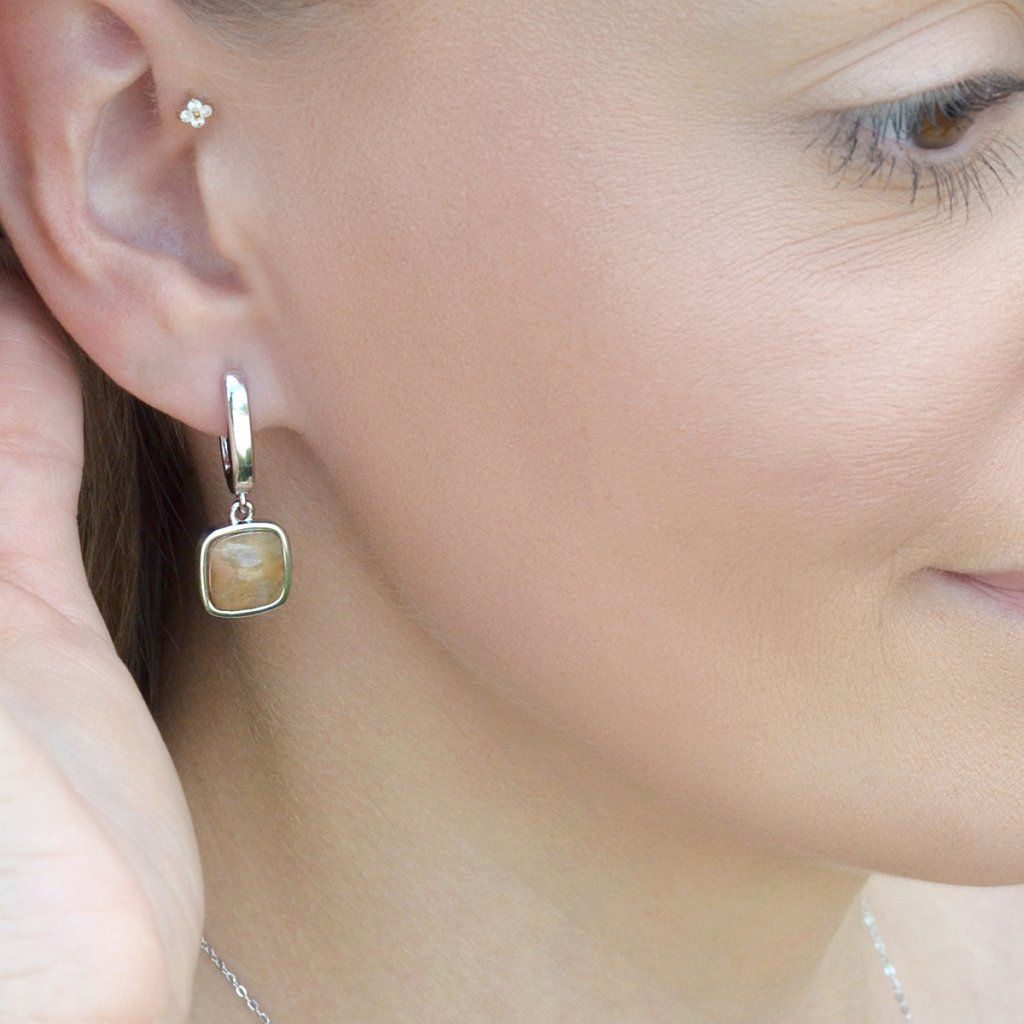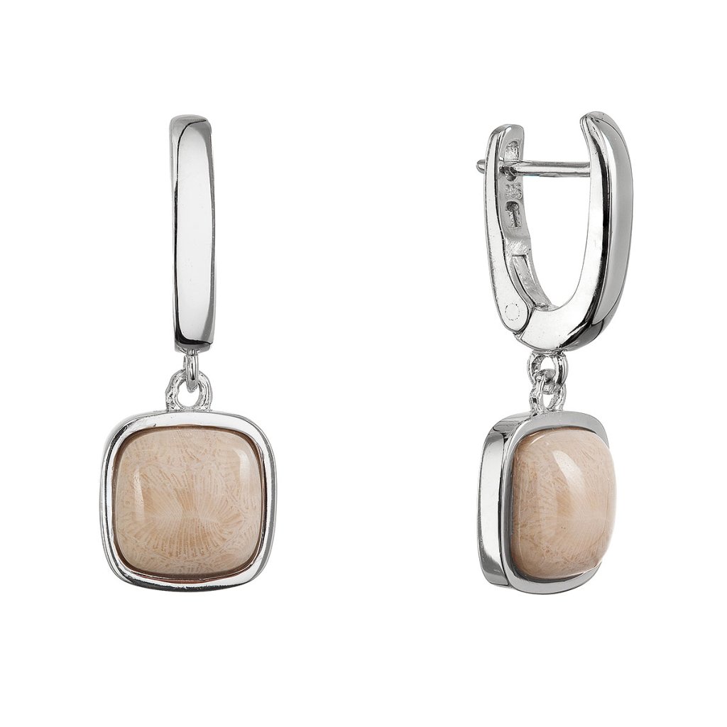 Stříbrné visací náušnice s fosilním korálem 11738.3