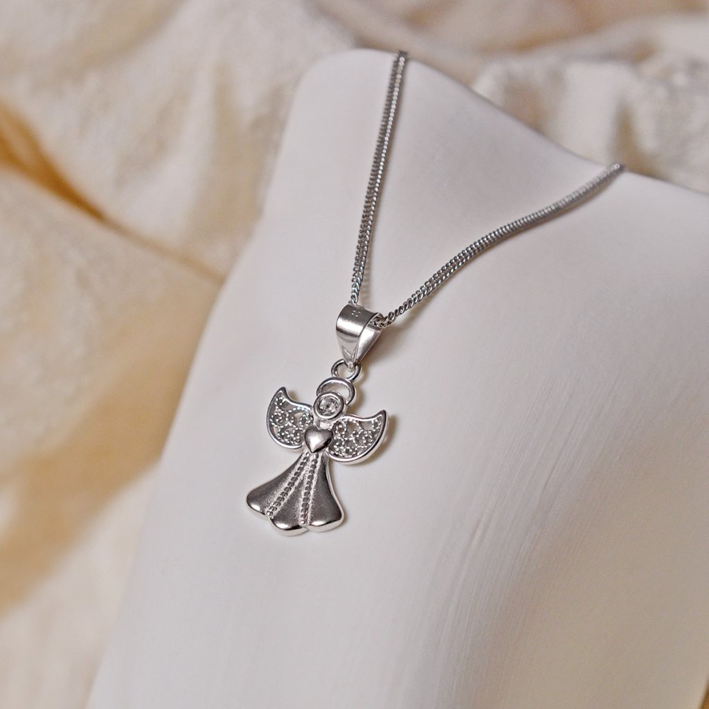 Stříbrný náhrdelník anděl se Swarovski krystaly bílý 32077.1