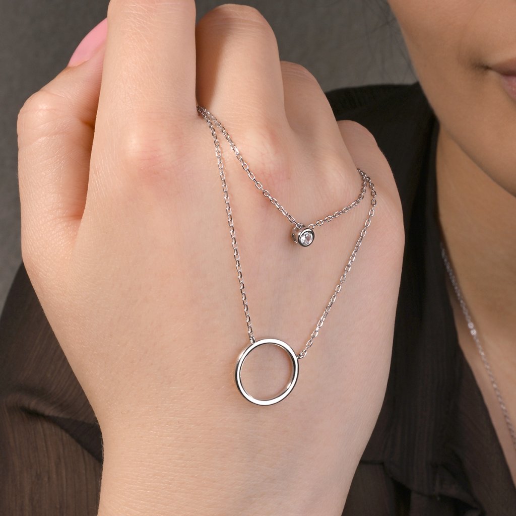 Stříbrný náhrdelník dvojitý řetízek kroužek a zirkon 12111.1
