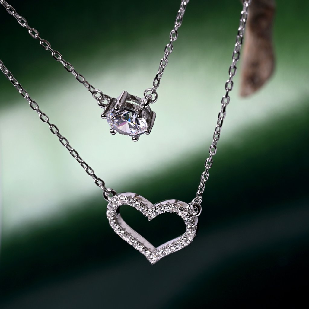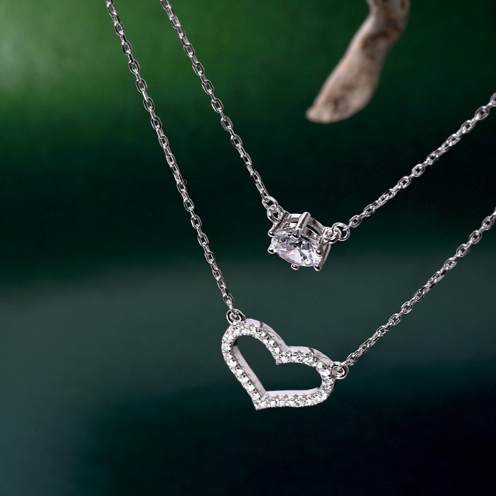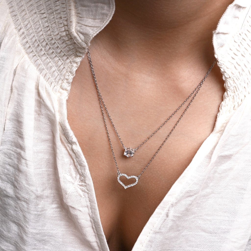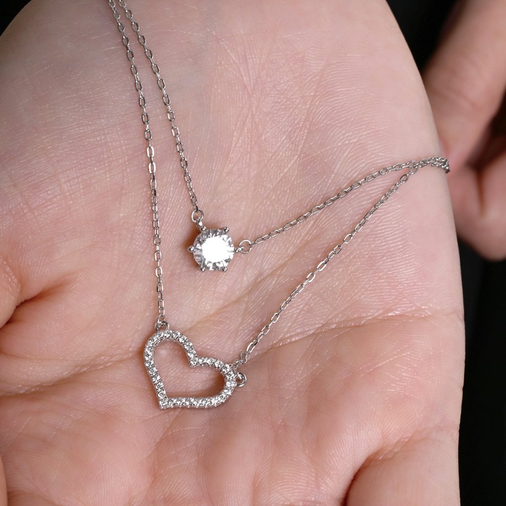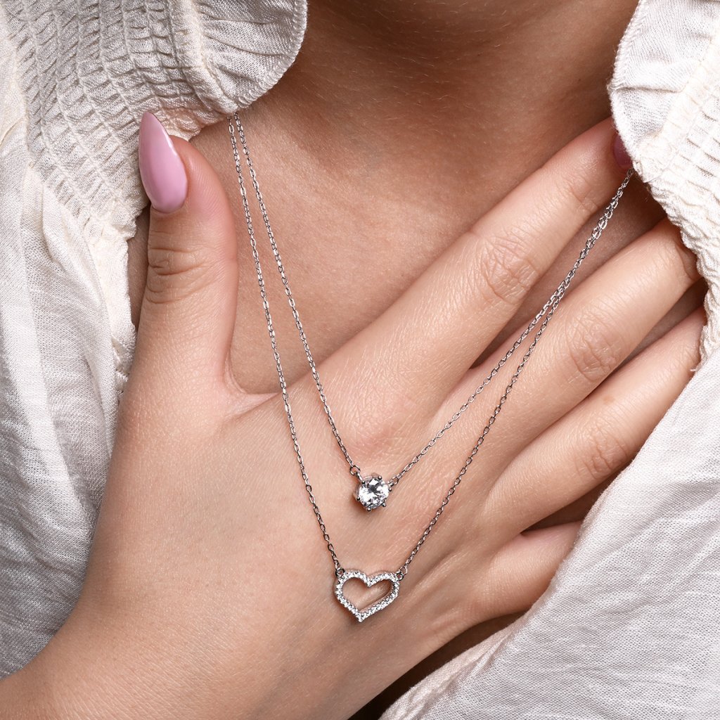 Stříbrný náhrdelník dvojitý se srdíčkem a zirkonem 12175.1